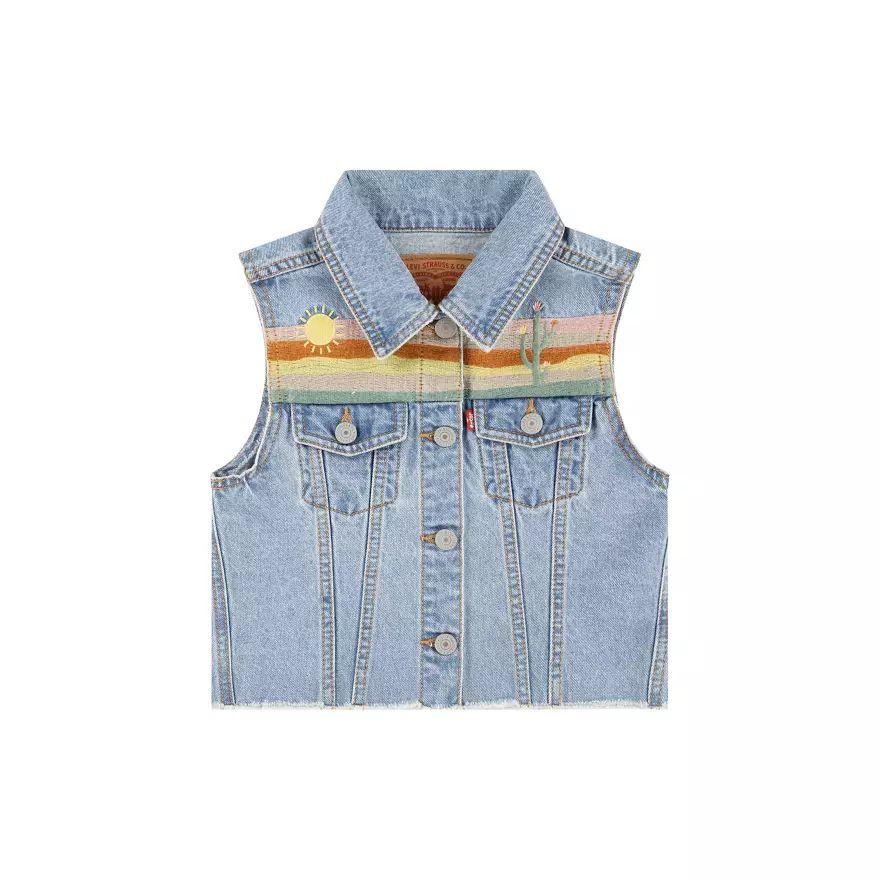Les gilets sont de retour, tout en style ! Donnez de la personnalité au style de votre tout-petit avec le gilet Levi's® Embroidered denim ! Confectionné dans notre denim légendaire auquel nous avons ajouté de jolies broderies et une coupe crop tendance avec un ourlet effiloché, ce gilet ne passera pas inaperçu.