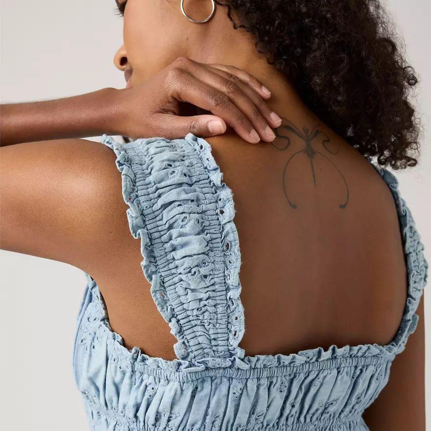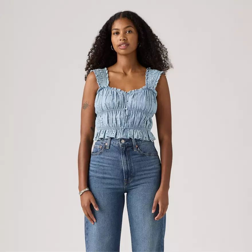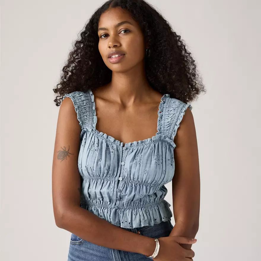 Un haut adorable qui vous donnera l’impression d’être en été. Notre blouse Amaya présente de jolies fronces, des bretelles qui recouvrent le soutien-gorge et une patte de boutonnage devant.