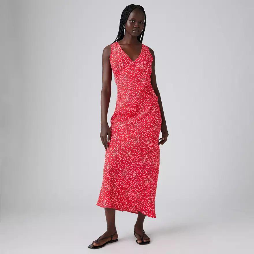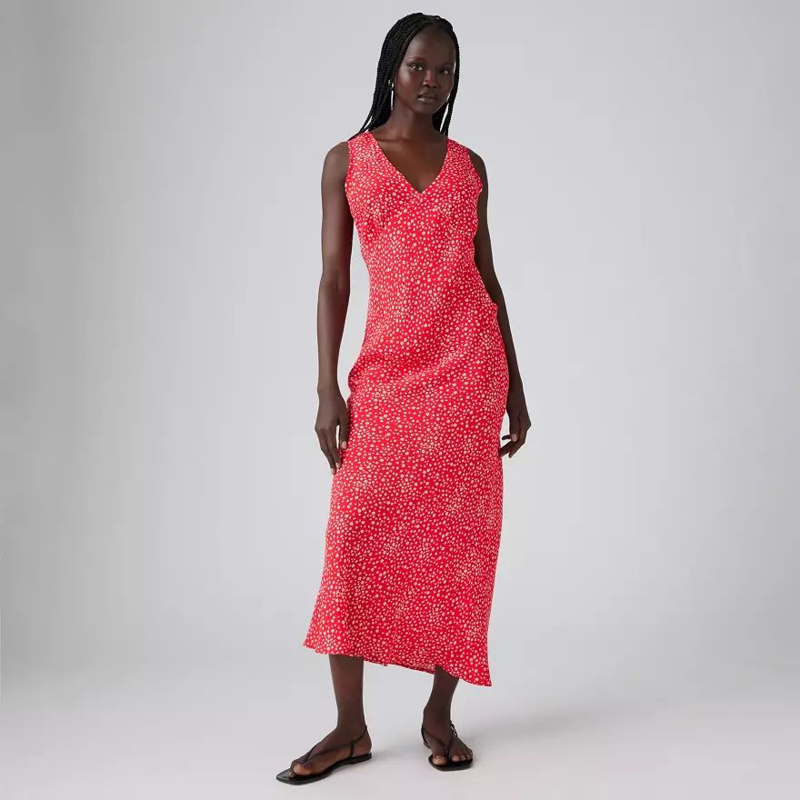 La robe des années 90 de vos rêves est arrivée. Notre robe Atalia présente une belle encolure en V, une coupe en A et une longueur cheville.
