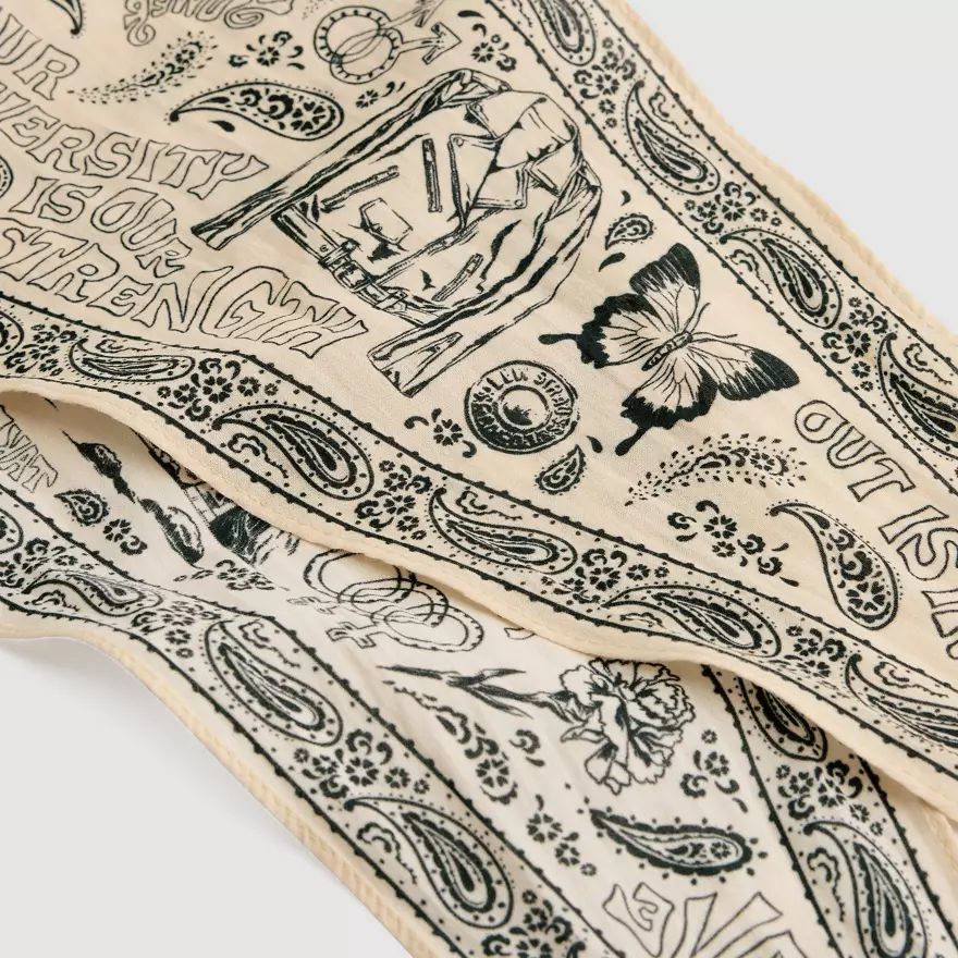 Ce bandana Pride au motif d’inspiration Western est en tissu doux comme la soie.