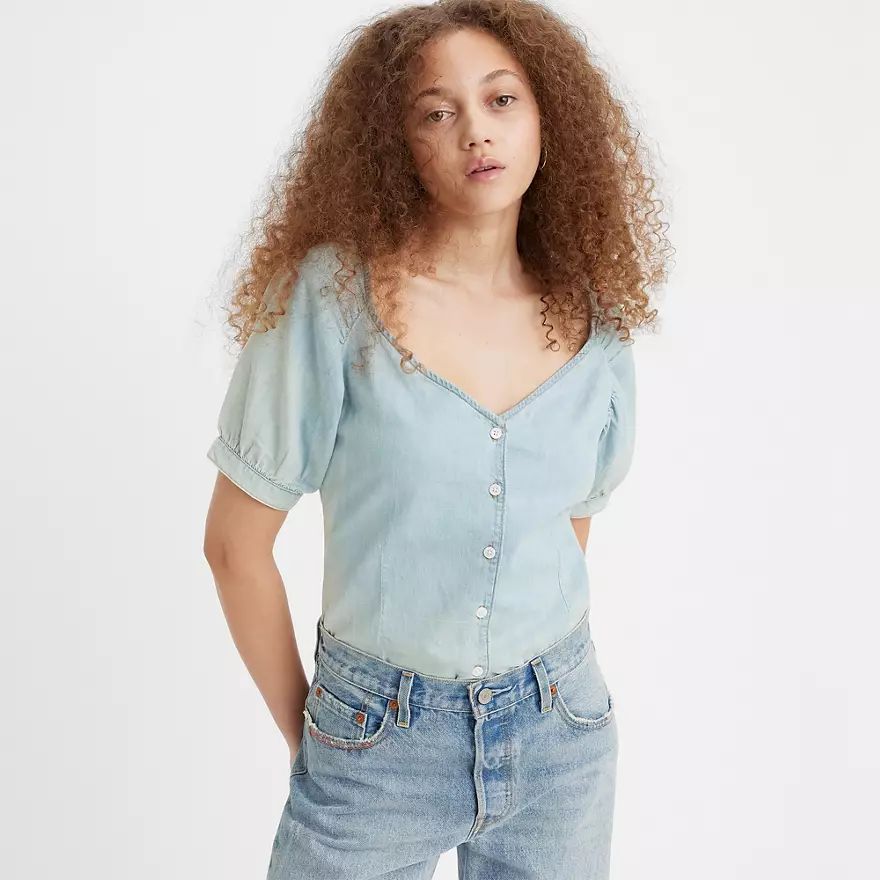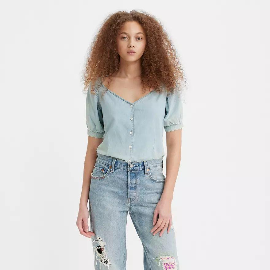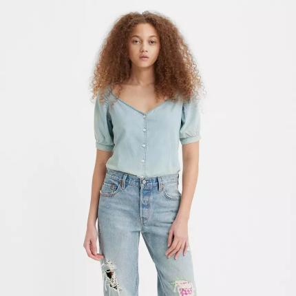 Avec une charmante encolure en V et une patte de boutonnage devant