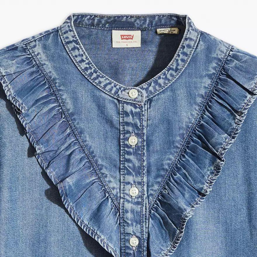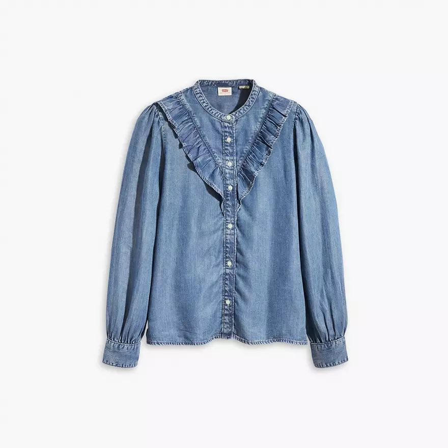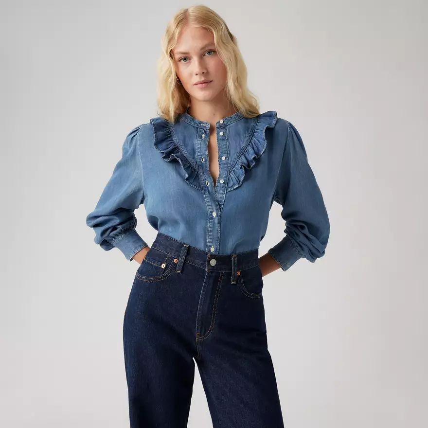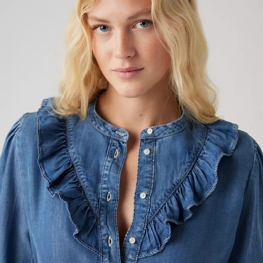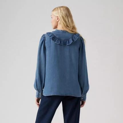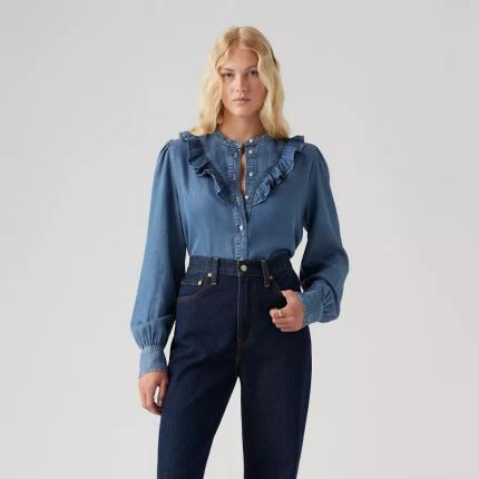Un peu féminin. Un peu western. Nous proposons notre blouse Carinna avec une patte de boutonnage classique, des volants qui remontent vers les épaules, des manches blousantes et un fit naturel.