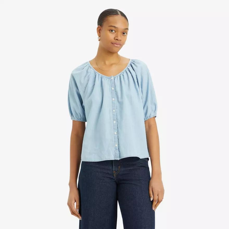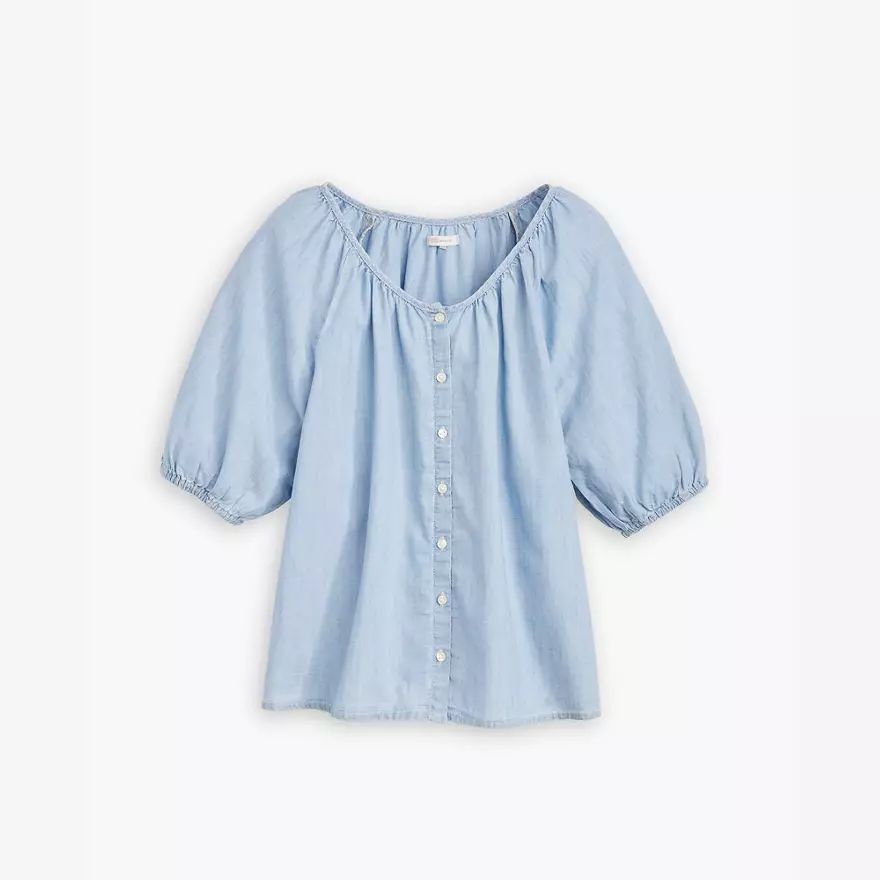 Un joli haut estival à porter avec votre denim préféré. Notre blouse Leanne boutonnée sur le devant présente des manches bouffantes et un fit fluide pour un style décontracté.