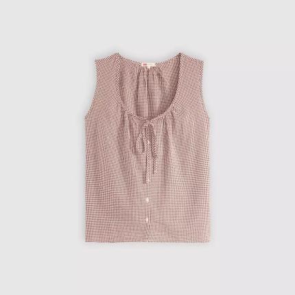 Couleur: Hedi Micro Gingham Chocolate Truffle Seersucker - Marron