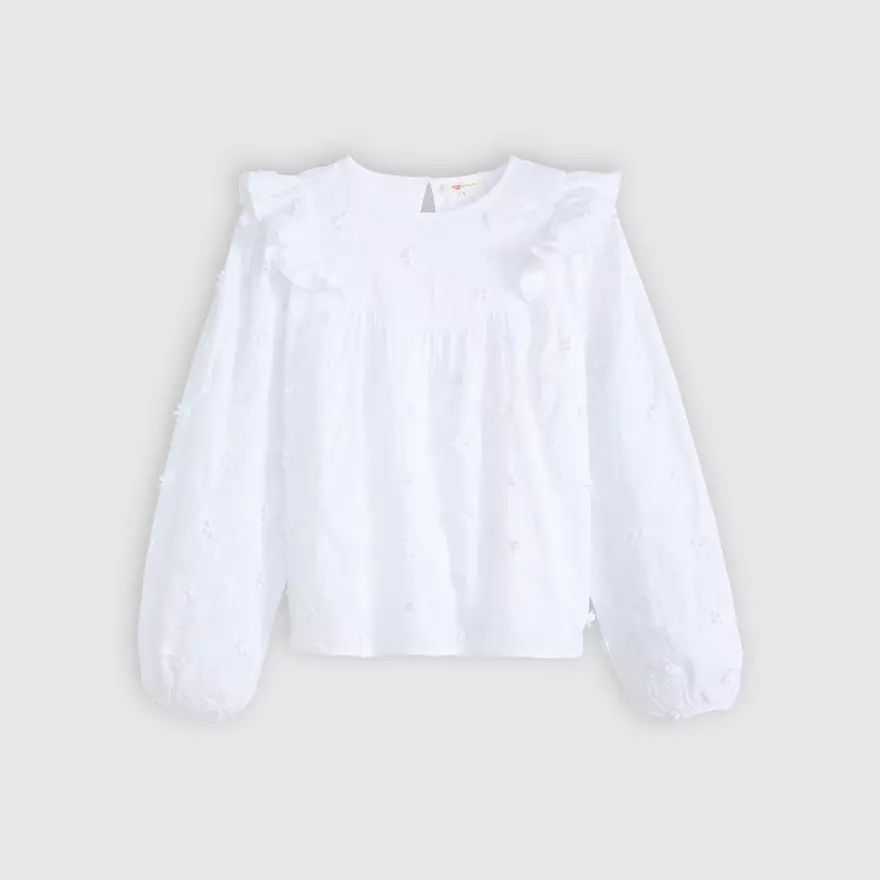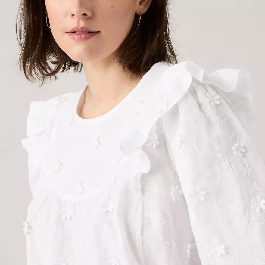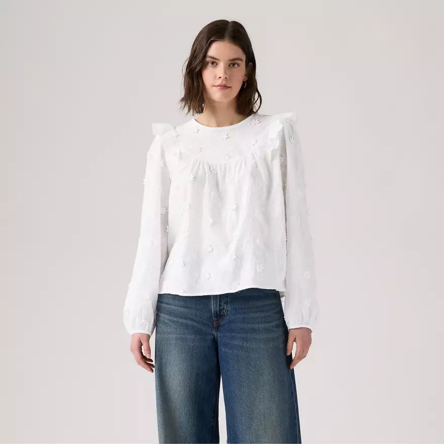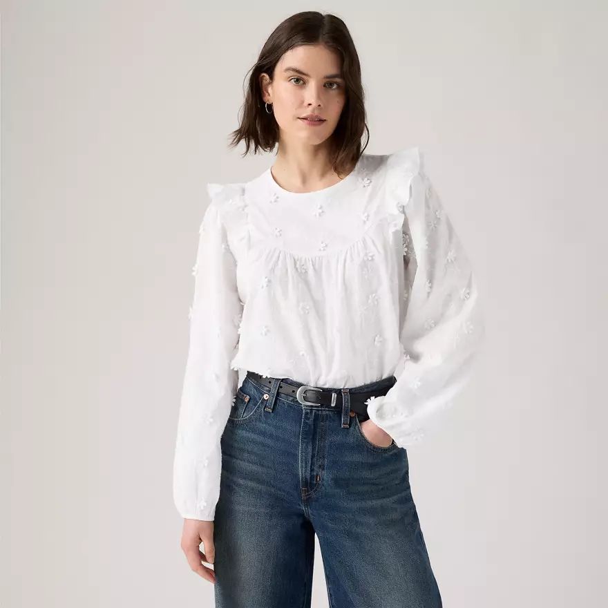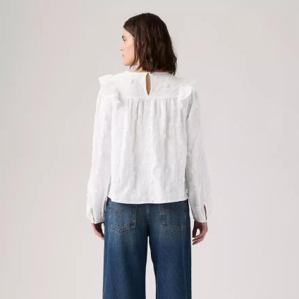 En cas de doute, optez pour notre blouse Mallory. Elle a une coupe fluide pour aller avec vos pantalons préférés et des effets de volants pour une touche romantique.
