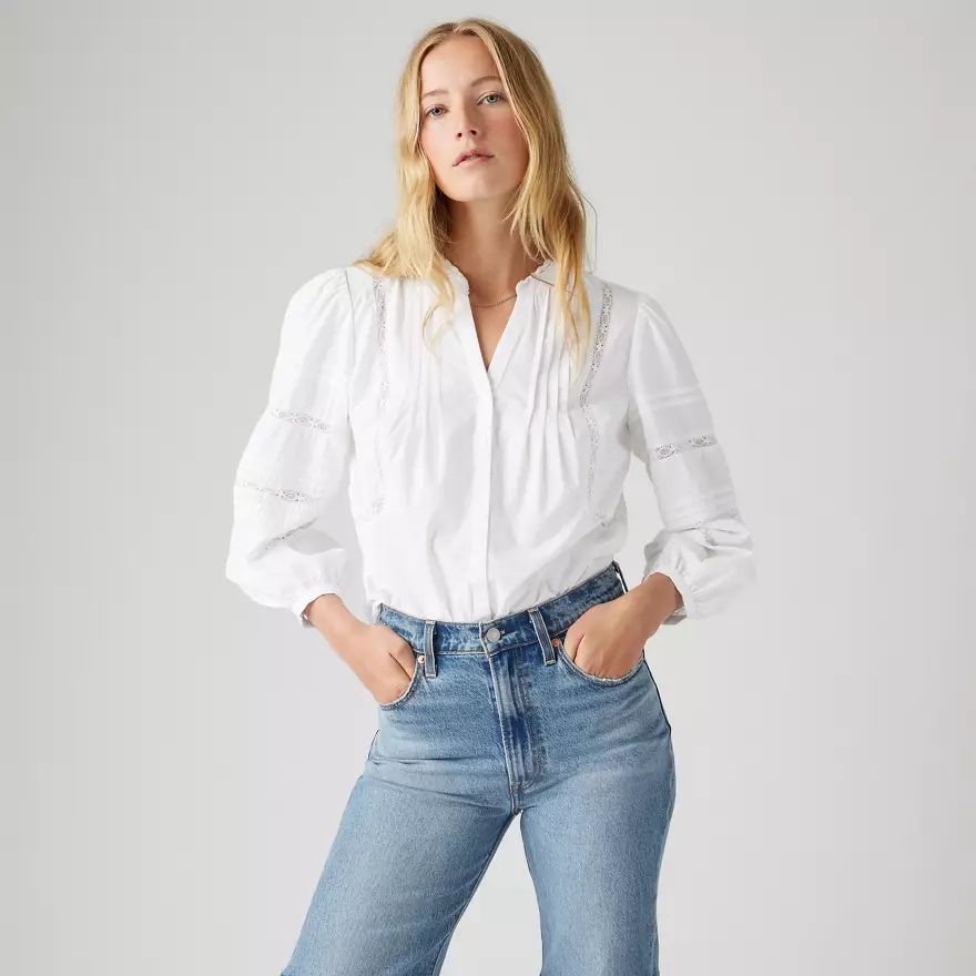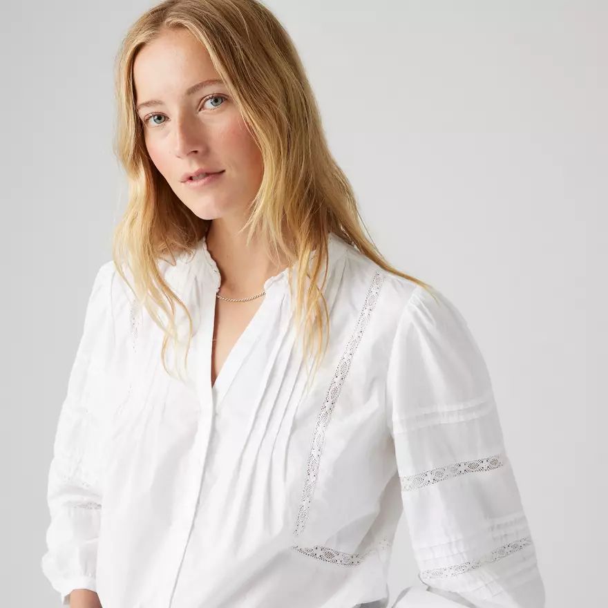 Pour un effet de style instantané, notre blouse manche longue Mandy présente une patte de boutonnage devant, des liserés en dentelle et un fit légèrement fluide.