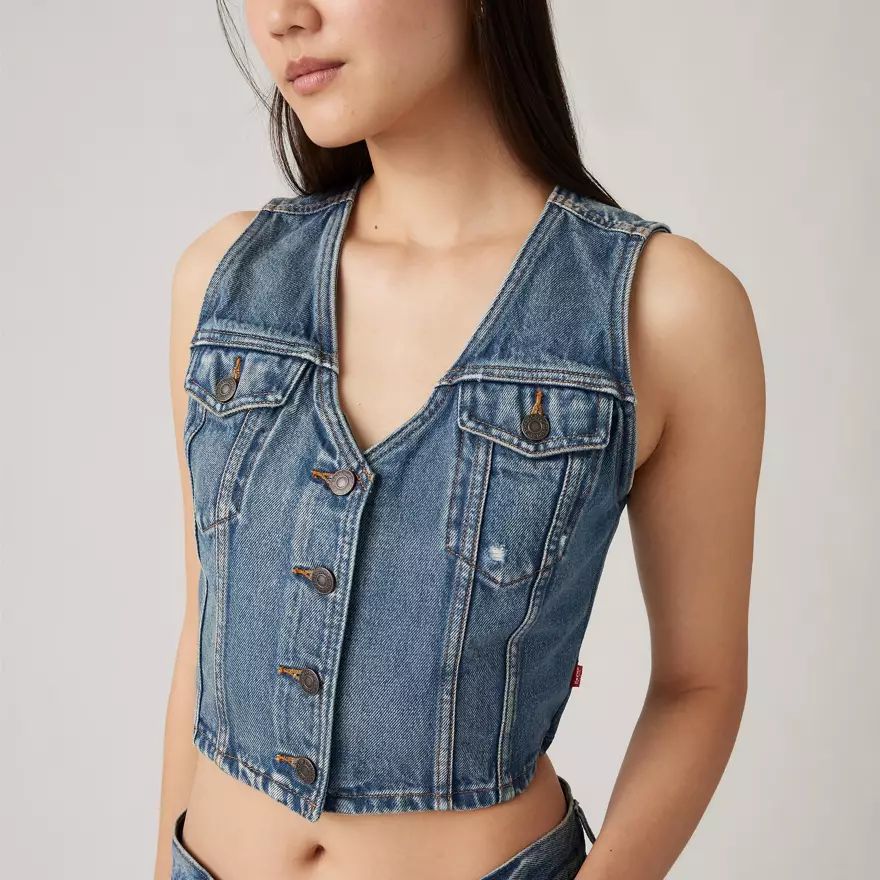 Corset qui épouse vos formes et va parfaitement avec votre denim préféré. Notre corset Bella Denim boutonné présente une encolure en V, deux petites poches poitrine.