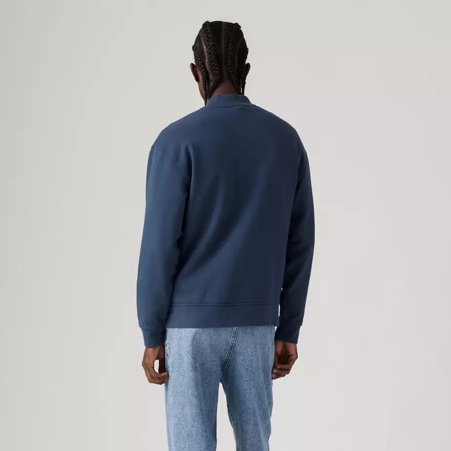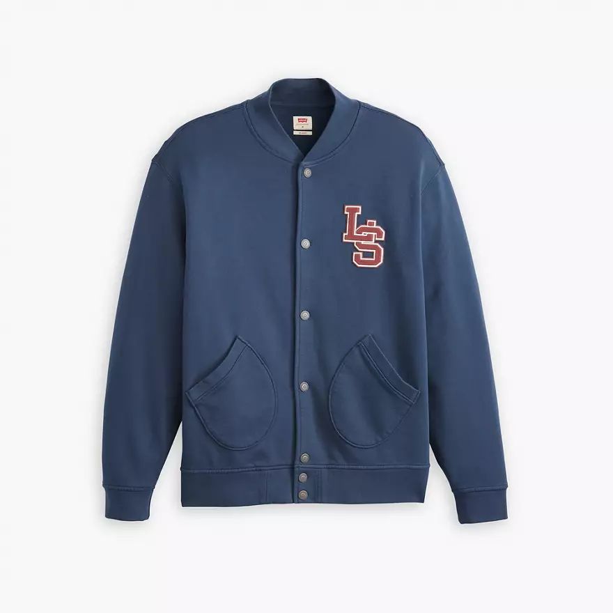 Notre cardigan blouson d’aviateur a pris le meilleur des deux. Nous avons opté pour une patte de boutonnage devant, un fit relaxed, deux poches en biais et un logo Levi's® universitaire.