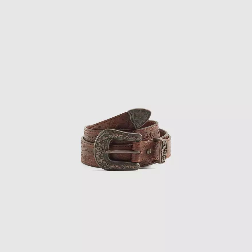 Mi-rétro, mi-Western. Cette ceinture Rodeo en cuir véritable a un design de style Western. Et la sangle a été teintée à la main pour un look vintage.