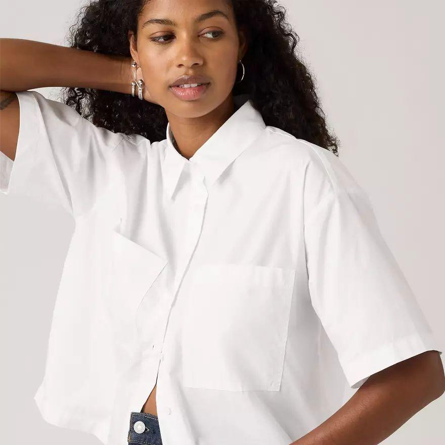 Notre chemise manche courte crop Harlie est courte et adorable, un petit bijou. Sa coupe crop et décontractée est soulignée par une patte de boutonnage classique et deux poches plaquées.