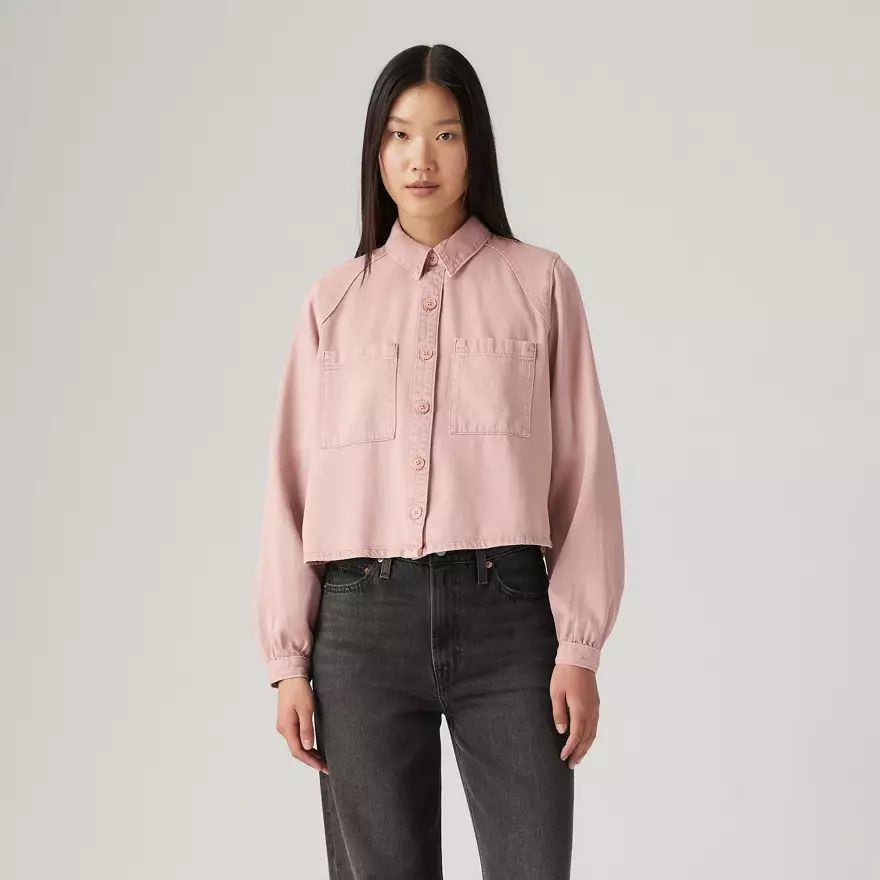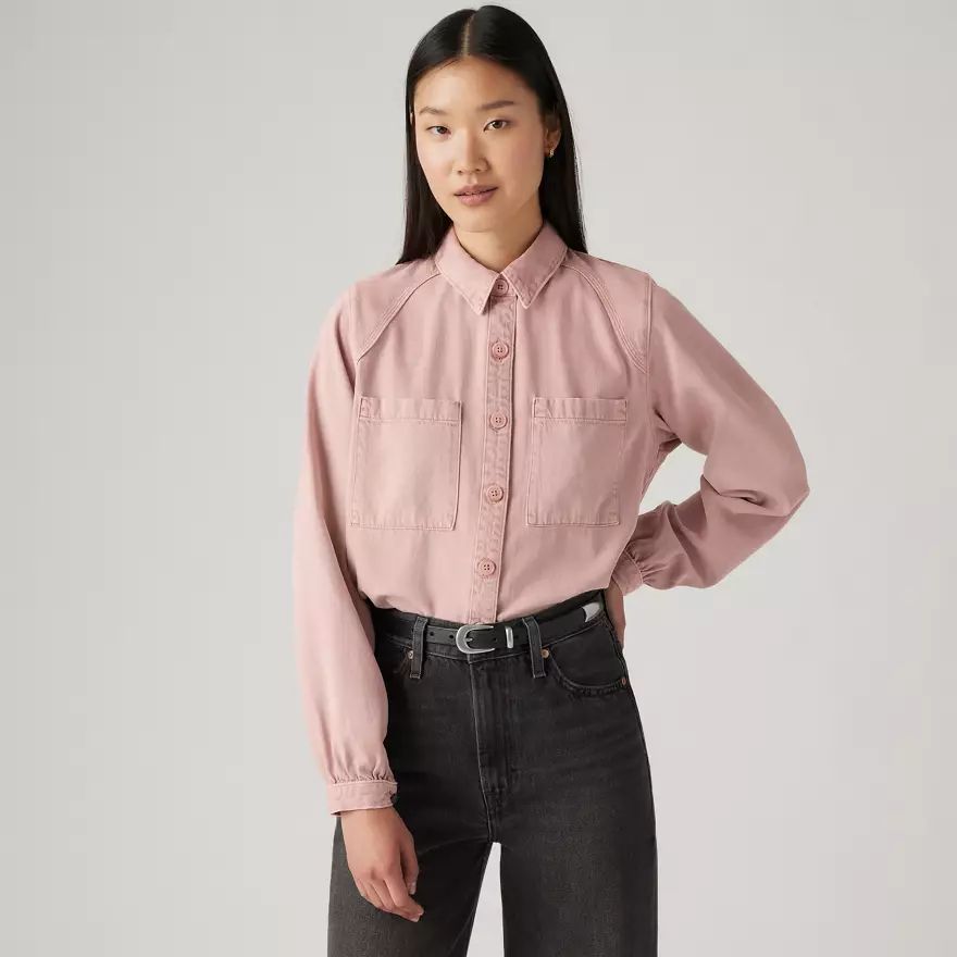 Nous avons repris les codes d’une chemise classique et avons ajouté quelques détails spéciaux à notre chemise Tyla, comme des manches volumineuses, deux poches plaquées oversize et notre fameuse Red Tab.