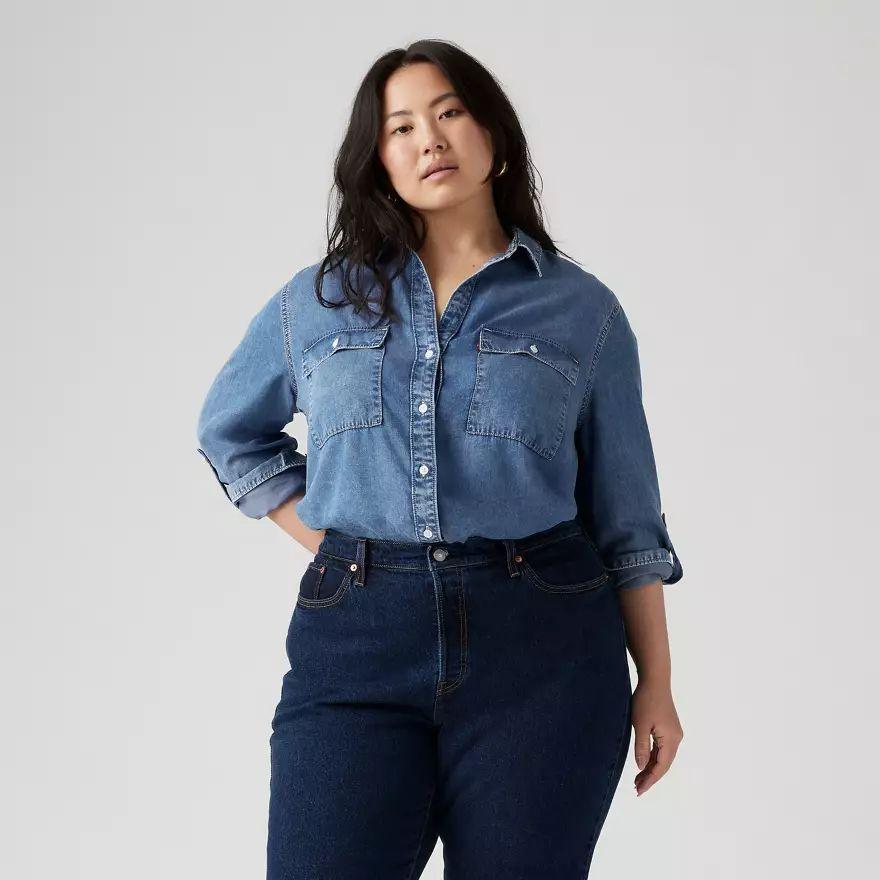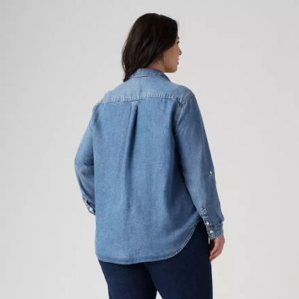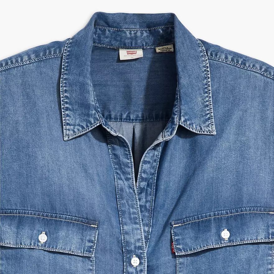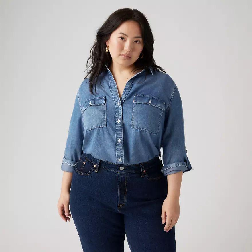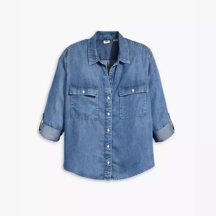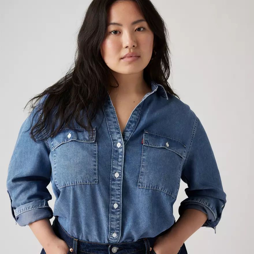Inspirée du style workwear classique, notre chemise utilitaire Doreen a une patte de boutonnage intemporelle (sans bouton au col), deux poches plaquées oversize et des manches longues que vous pouvez retrousser et maintenir par une patte boutonnée.