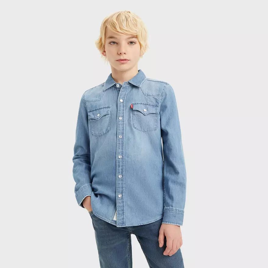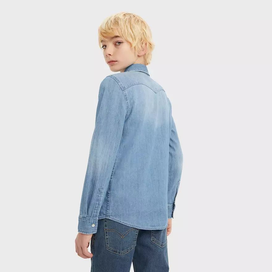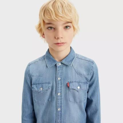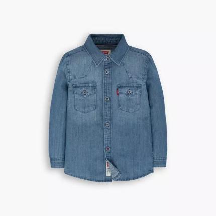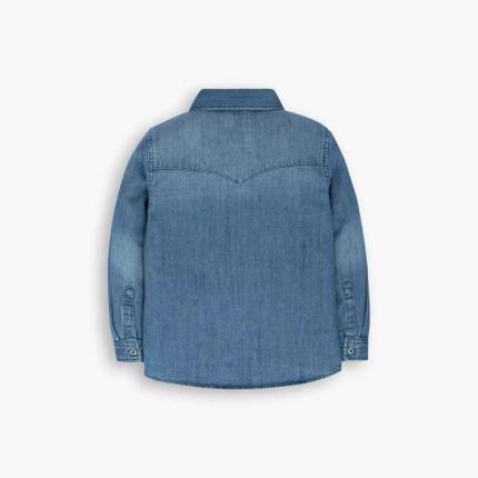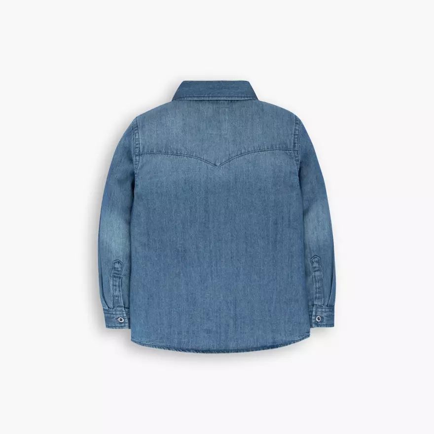Denim flammé en coton BCI issu de sources durables2 poches poitrine à rabatDétails originaux comme l’empiècement yoke en pointe et le bouton pression en nacreBas de chemise à pan arrondi