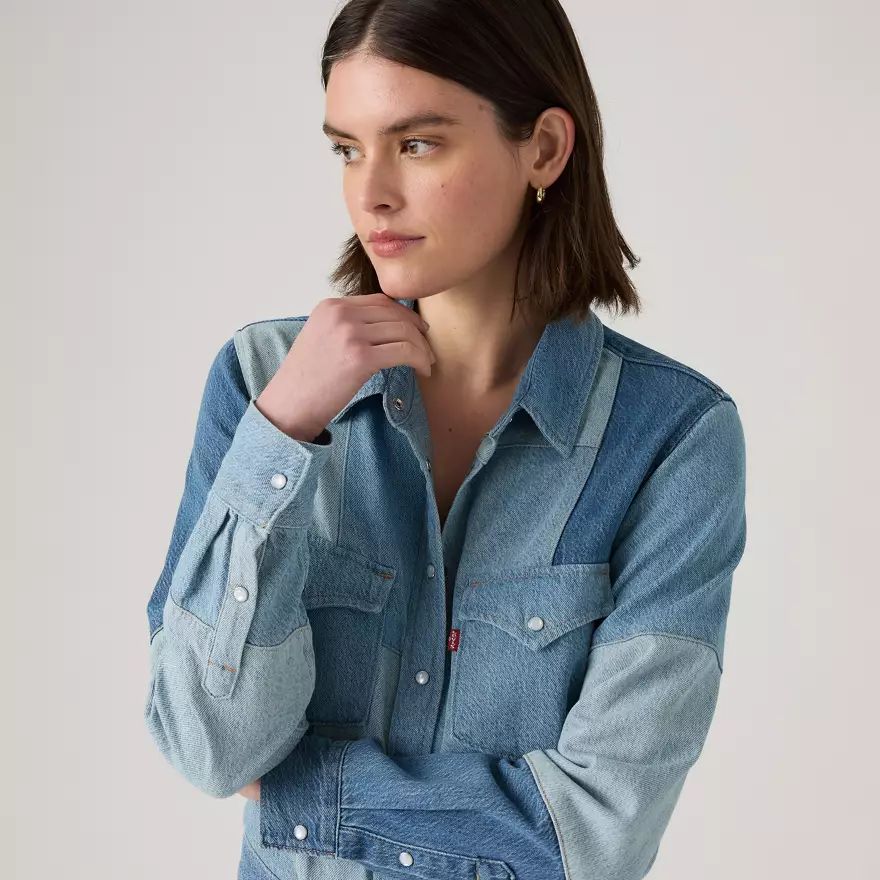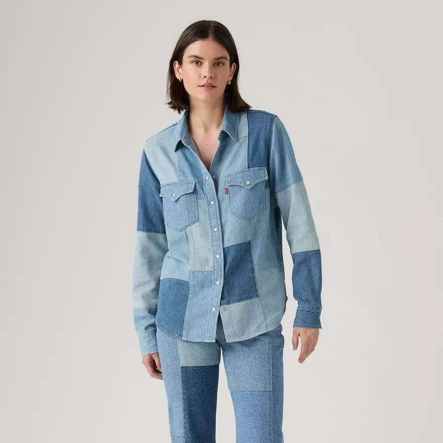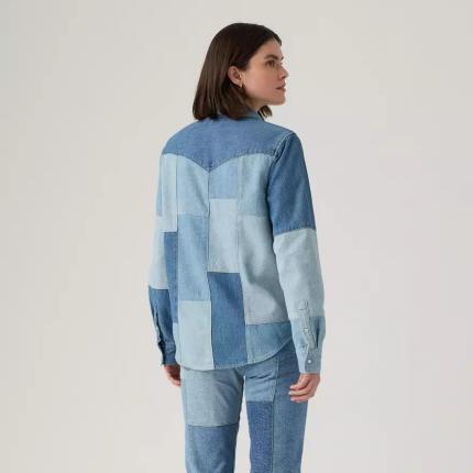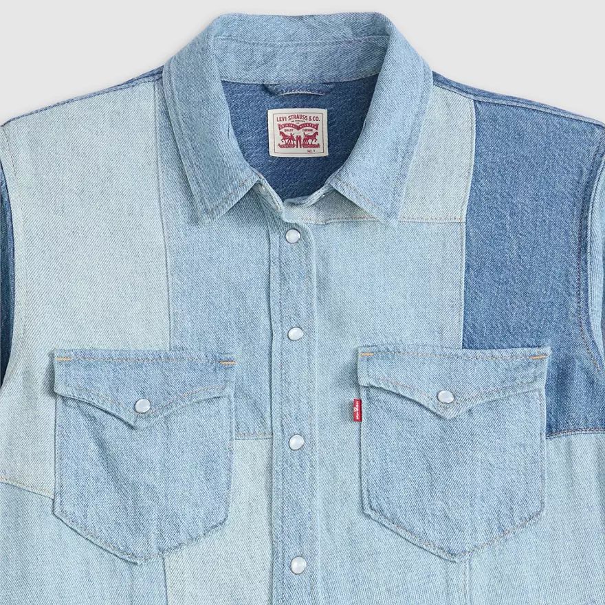 Nous avons repris la chemise intemporelle à laquelle nous avons ajouté un motif patchwork en denim. Notre chemise Western Patchwork Iconic a une coupe classique et décontractée et une patte de boutonnage devant avec deux poches poitrine classiques.