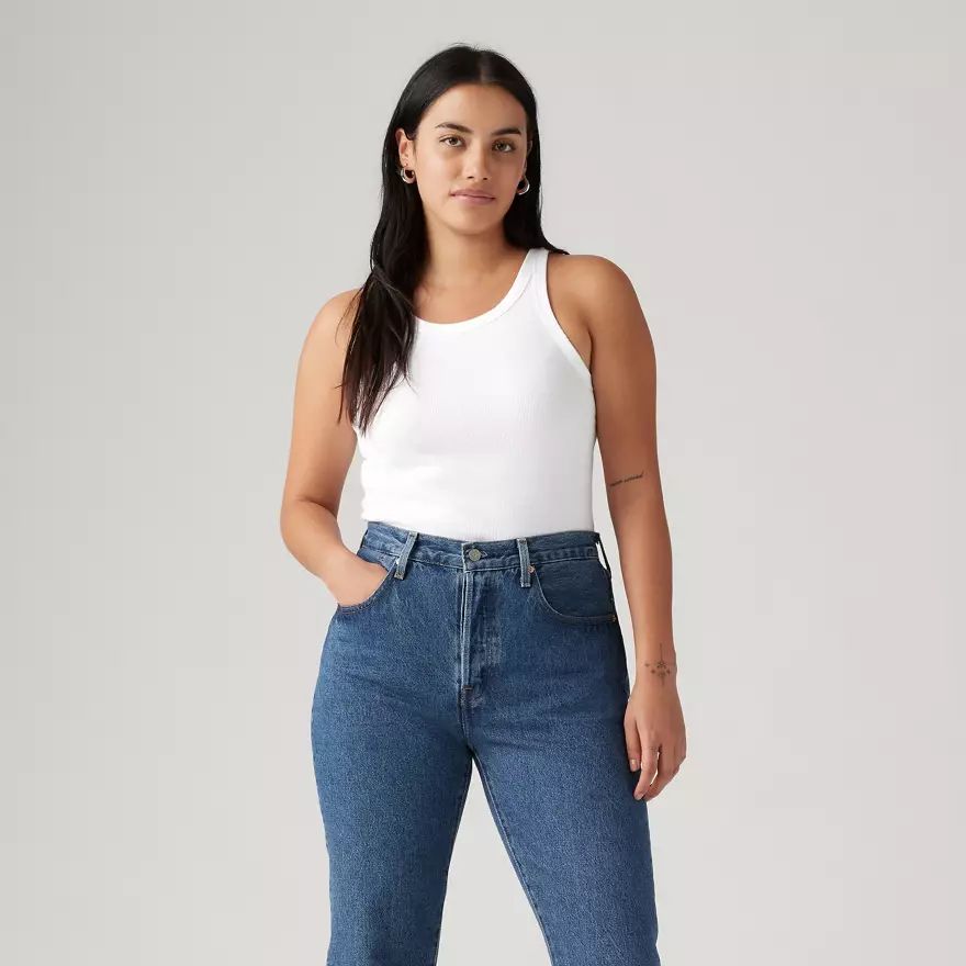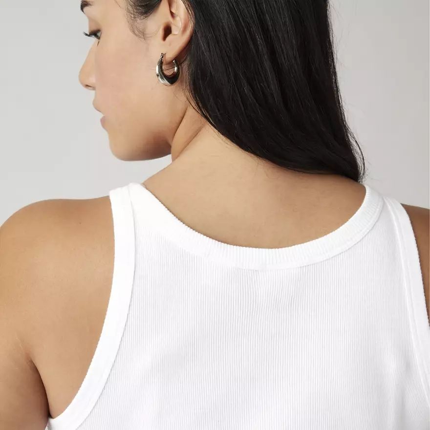 Le seul débardeur à dos nageur dont vous aurez besoin. Vraiment. On adore celui-ci pour plusieurs raisons : le bord côtelé le long de l’encolure et du dos nageur, la longueur parfaite et la matière douce. C’est simple, mais parfait.