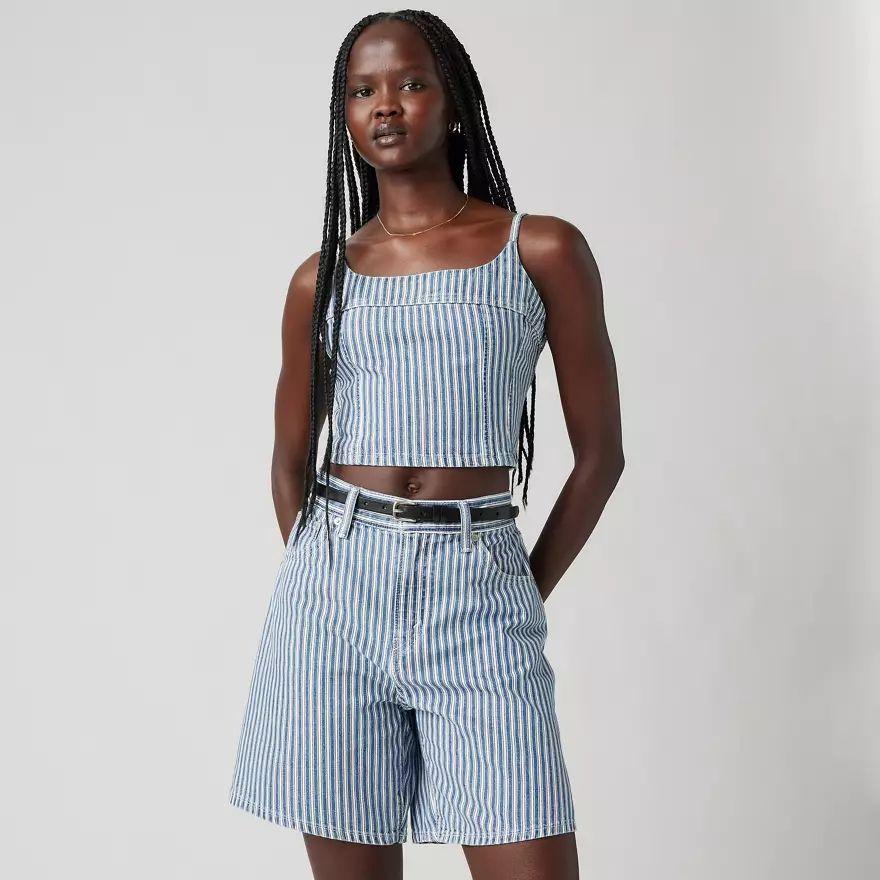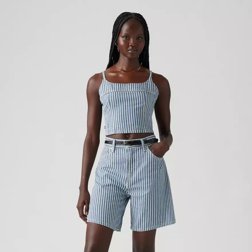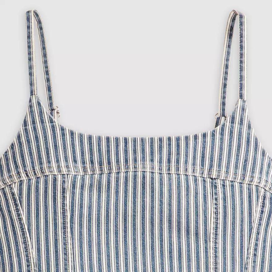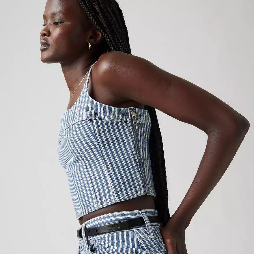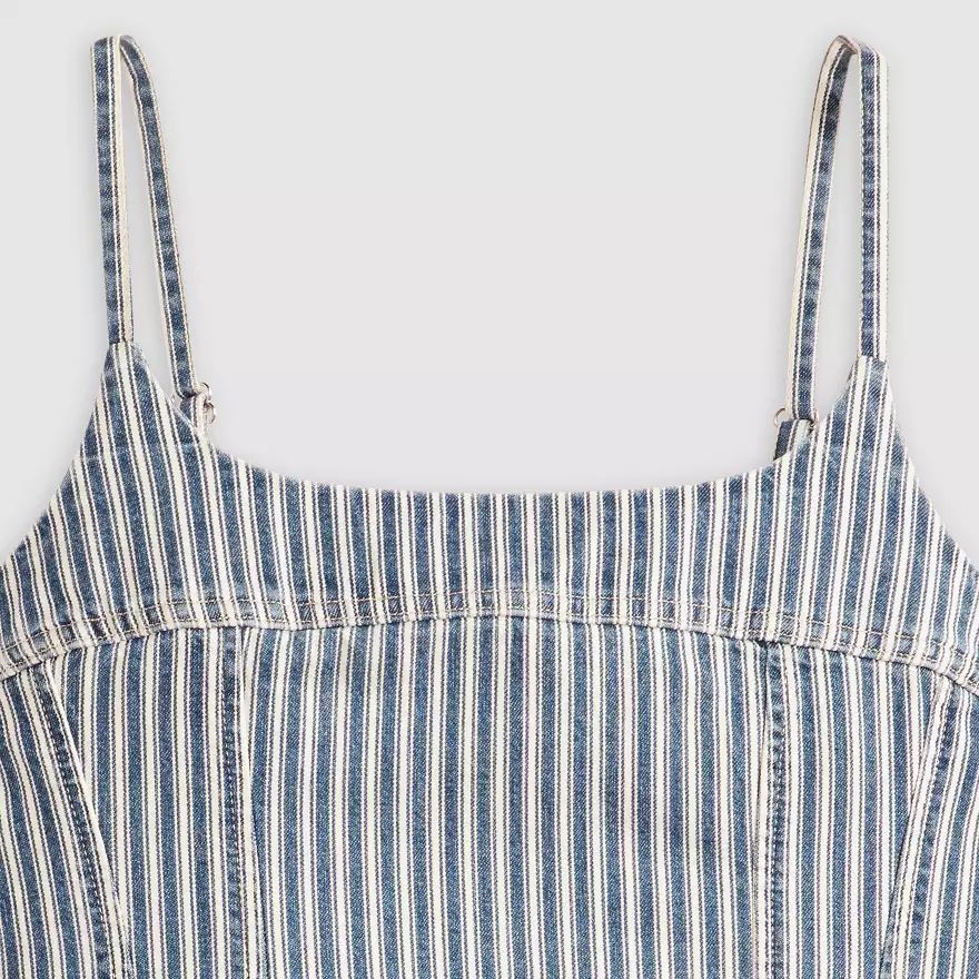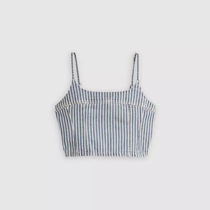 Un caraco toujours aussi craquant. Notre débardeur Jadine Denim Cami présente une charmante encolure dégagée, des bretelles fines et réglables et une coupe crop moulante.