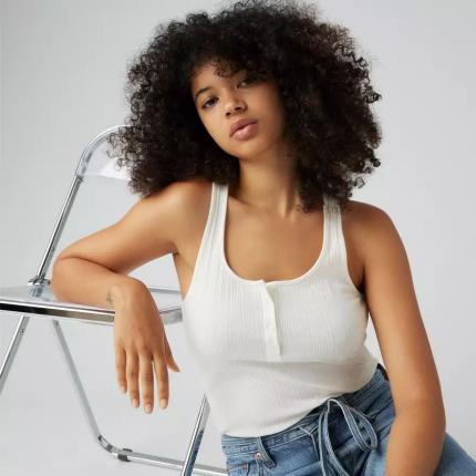Nous avons repris tout ce que nous aimions dans les hauts des années 90 et avons créé notre débardeur maille côtelée Vacationer. Il a une demi-patte de boutonnage, un fit slim flatteur et un design côtelé cosy.