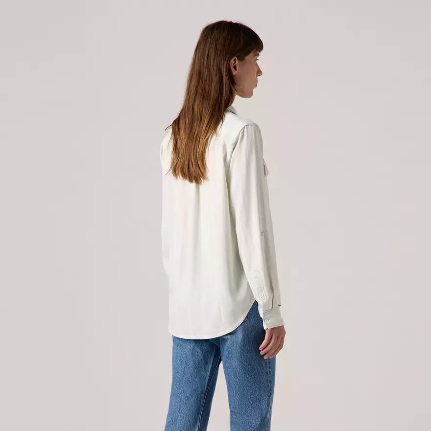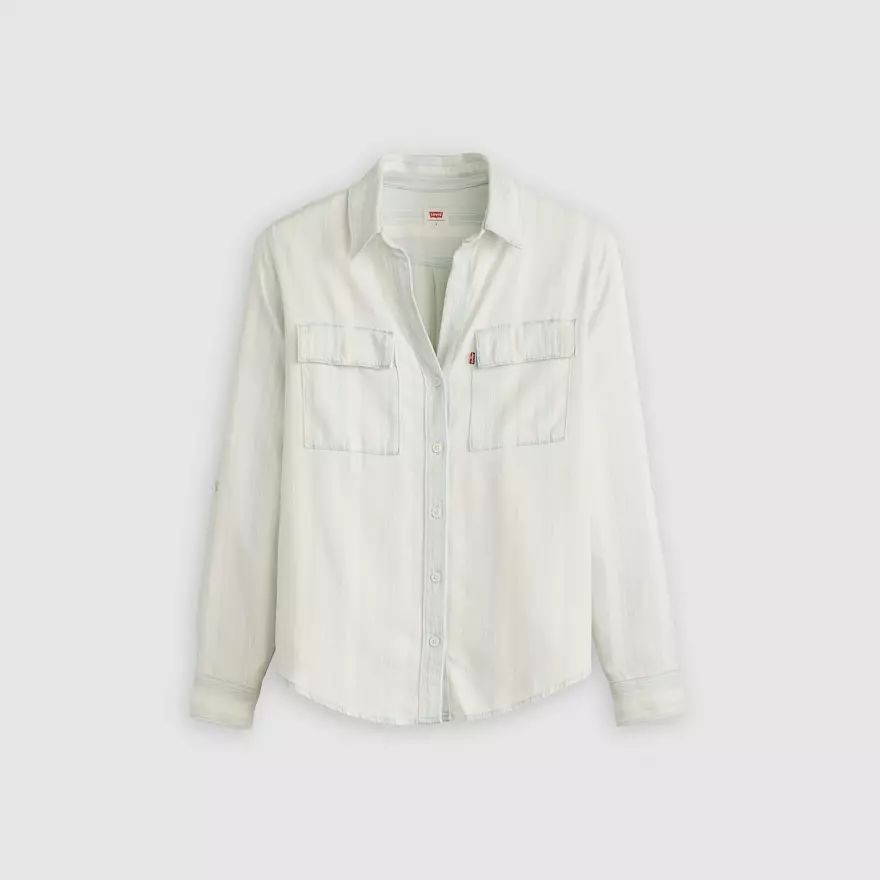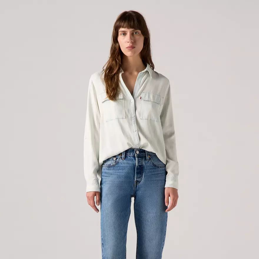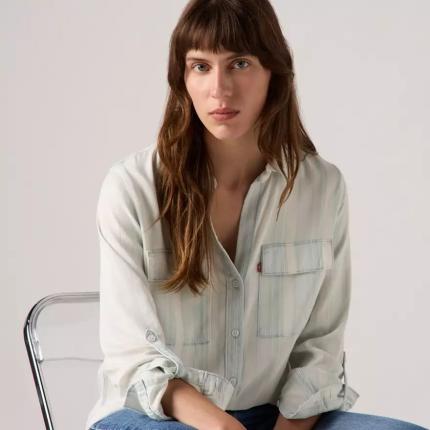 Inspirée du style workwear classique, notre chemise utilitaire Doreen a une patte de boutonnage intemporelle (sans bouton au col), deux poches plaquées oversize et des manches longues que vous pouvez retrousser et maintenir par une patte boutonnée.
