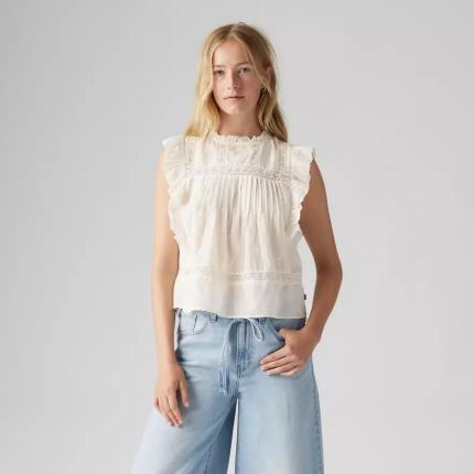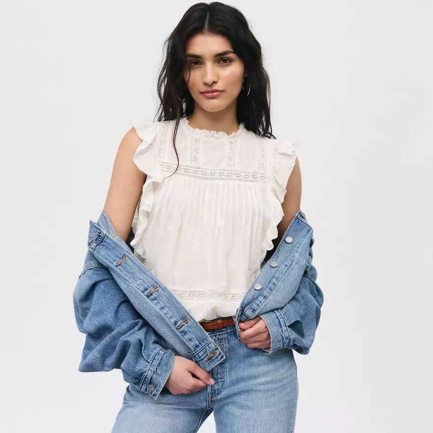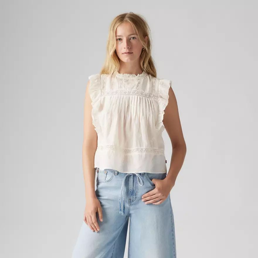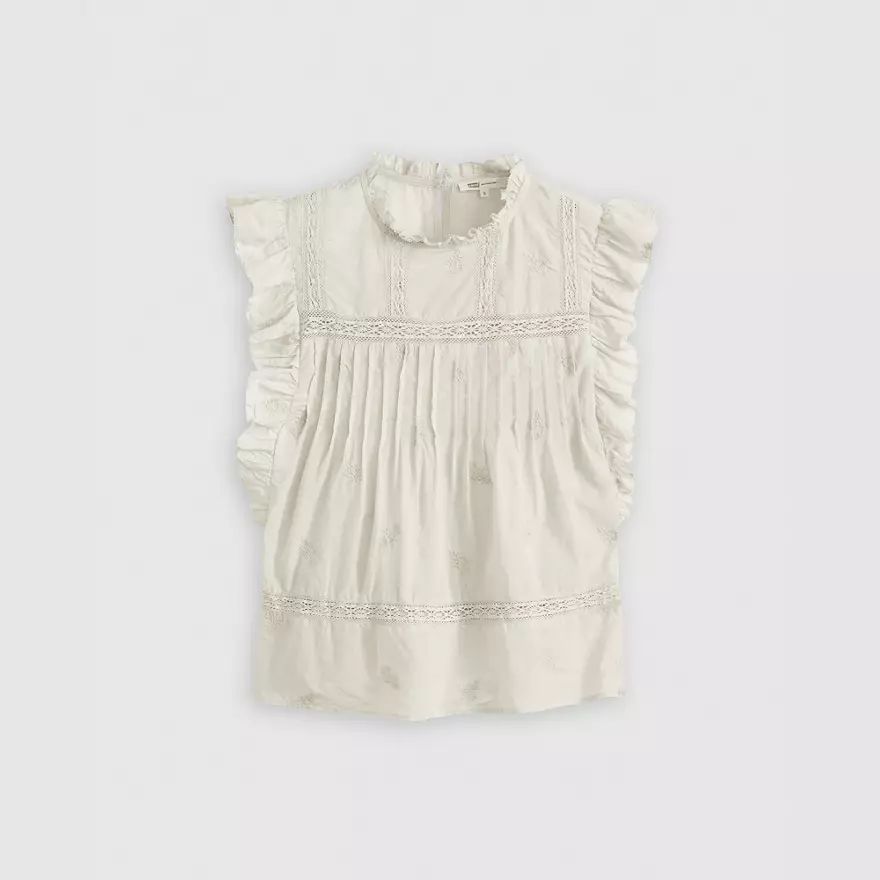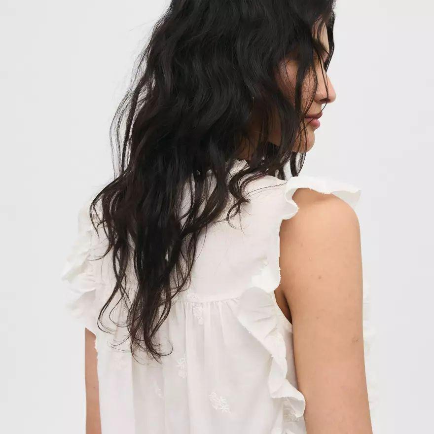 Charmante, élégante et follement romantique avec votre pantalon le plus baggy. Notre blouse Edith présente une encolure haute, des manches papillon, un fit fluide et des broderies de fleurs.