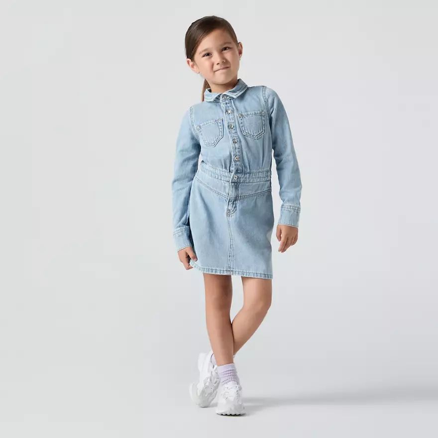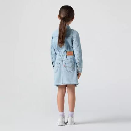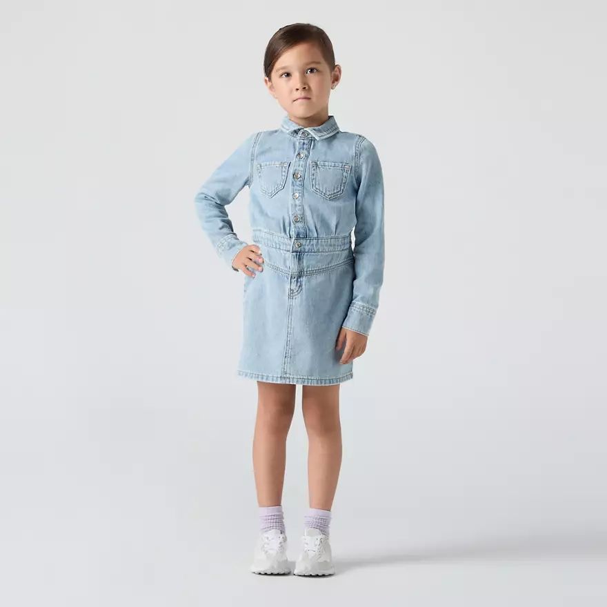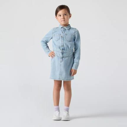 Cette magnifique robe Levi's® ajoutera un style iconique à son dressing ! Cet ensemble associe un haut chemise classique à une jupe crayon, avec des détails signature comme un col pointu, des poches poitrine et les traditionnelles poches arrière Levi's®, ajoutant une touche de charme vintage à leur look.