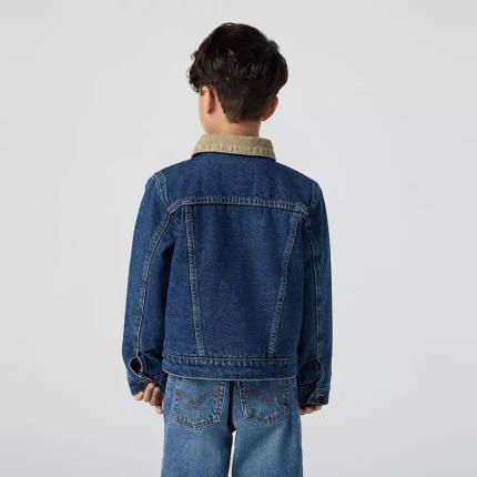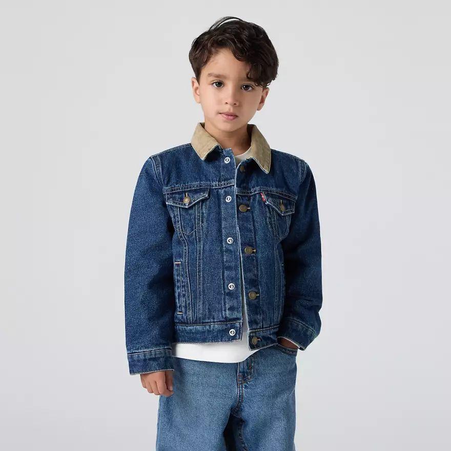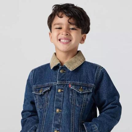 Cette veste Levi's® confortable vous facilitera la vie dès maintenant. La coupe Trucker emblématique a été revisitée avec une doublure intérieure matelassée et un col en velours côtelé doux pour que vos enfants aient bien chaud.