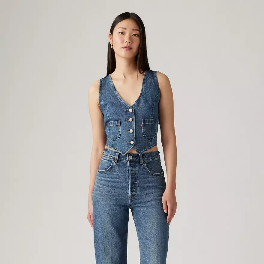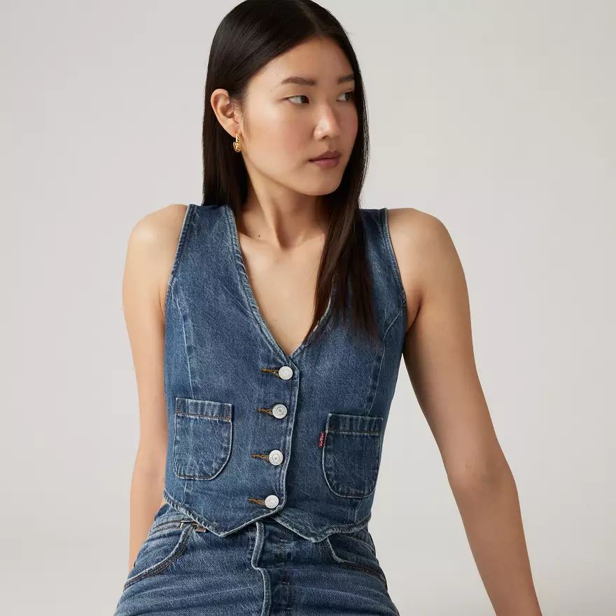Notre gilet Tailored Denim convient aussi bien le jour qu’en soirée. Il présente un fit standard, boutonnage sur le devant et un design ajusté.