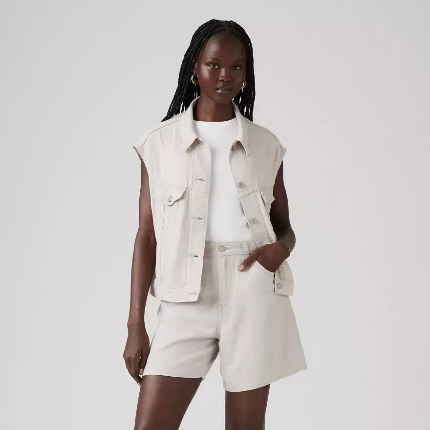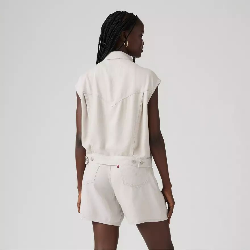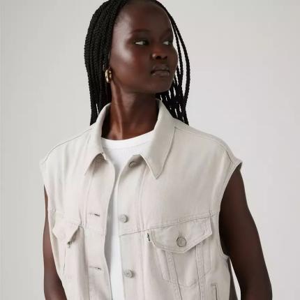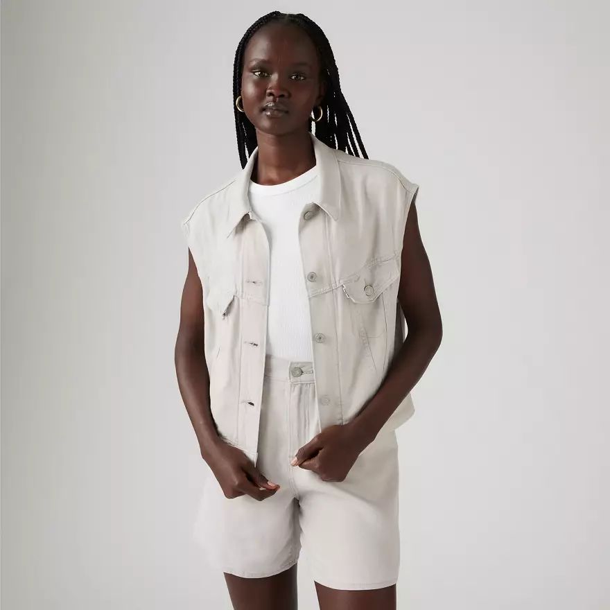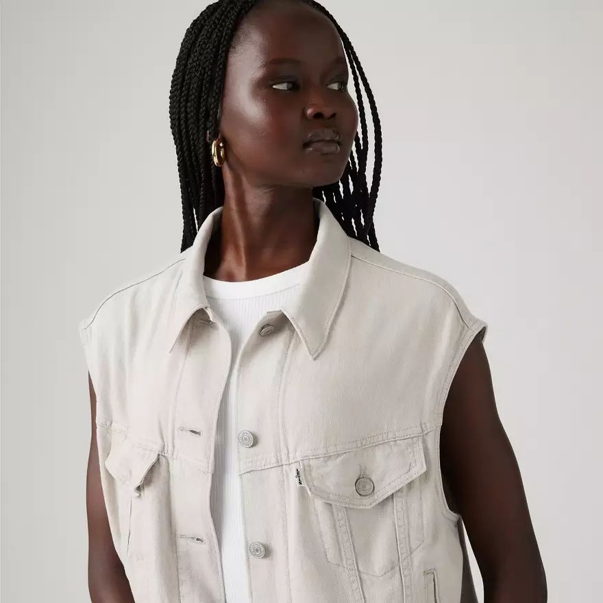 Notre veste Trucker Shrunken ’90s revisitée dans une version gilet sans manche. Il vous sera difficile de trouver un gilet avec une forme aussi pratique et aussi plaisante ou une sensation naturelle de décontraction et de bien-être. Bonus : cette coupe rétro affiche une silhouette inclinée dans l’esprit des années 90.