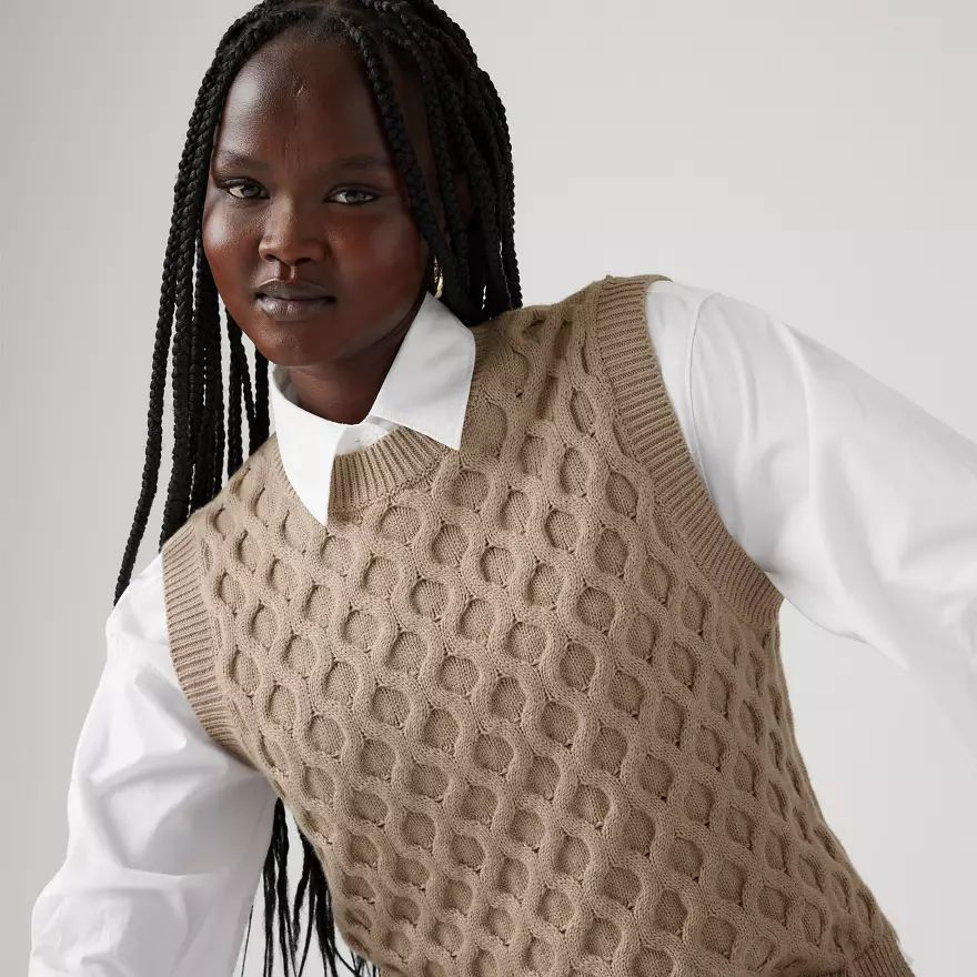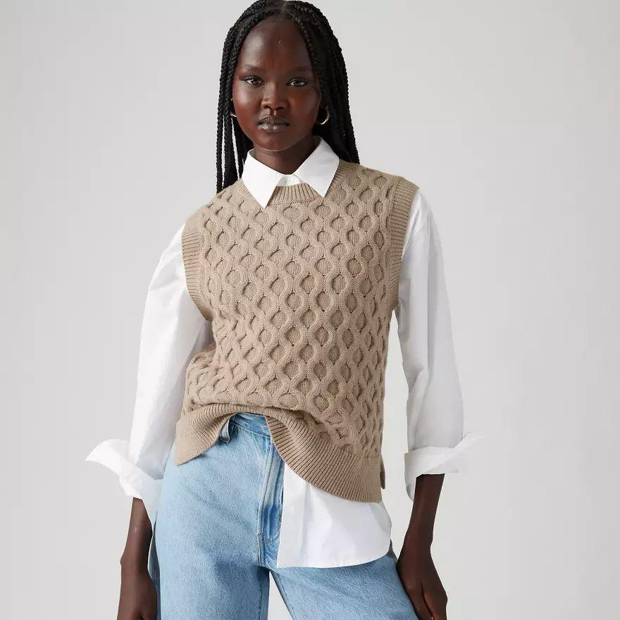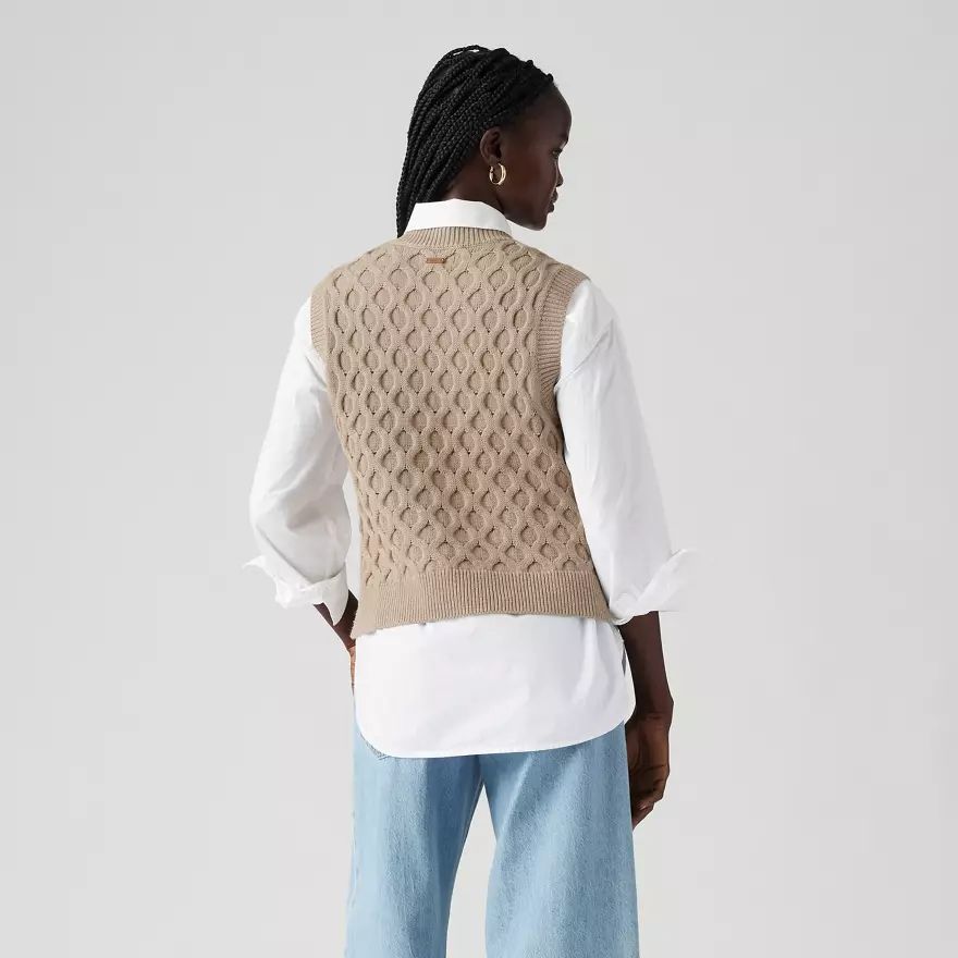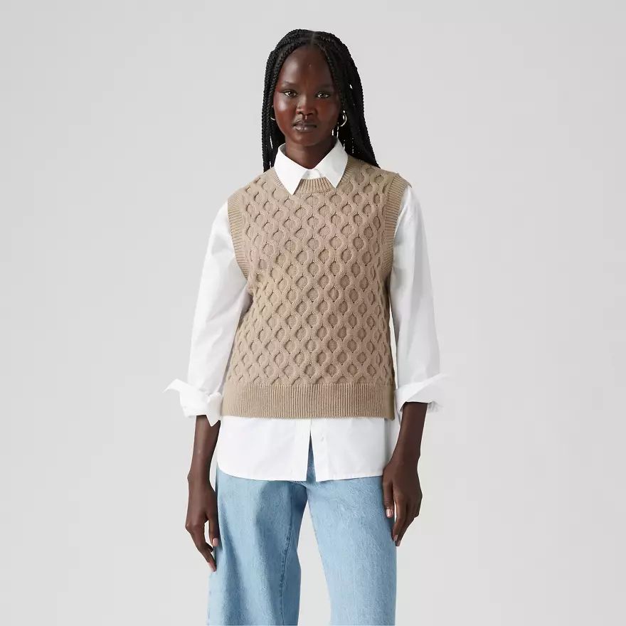 Emmitouflez-vous. Notre pull Bluebell Cable, en maille, a une encolure ronde, un fit Relaxed et de jolies torsades.