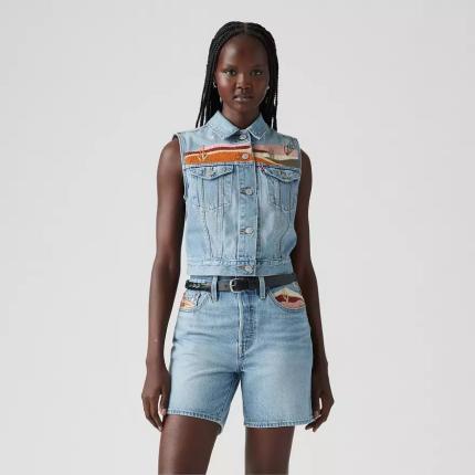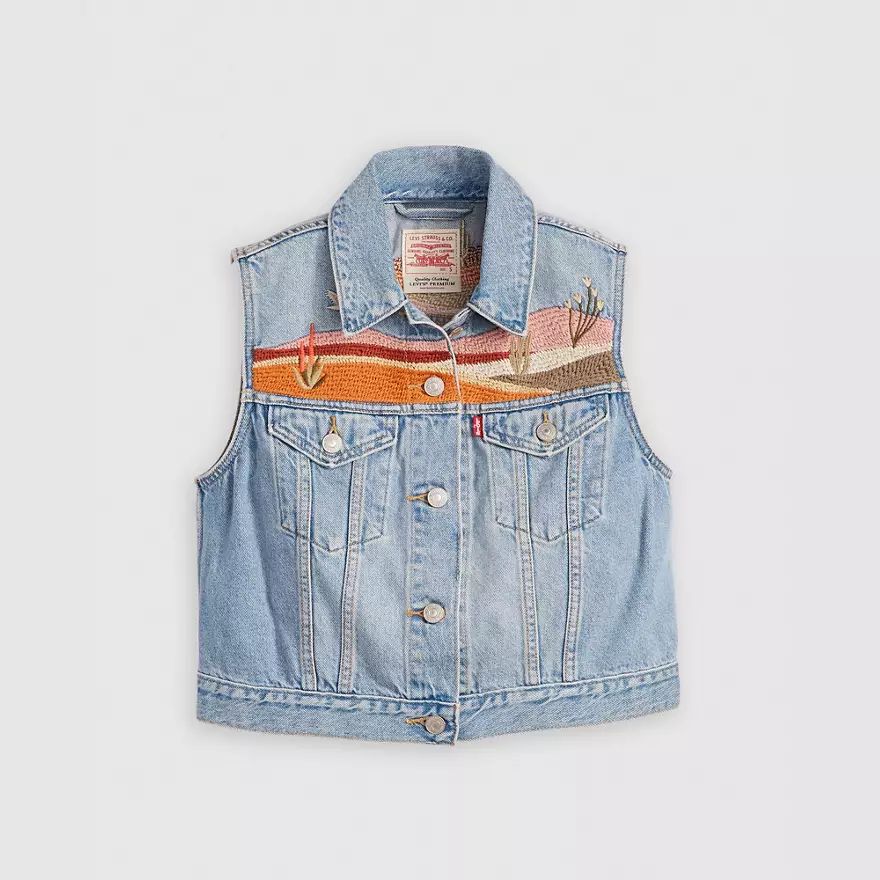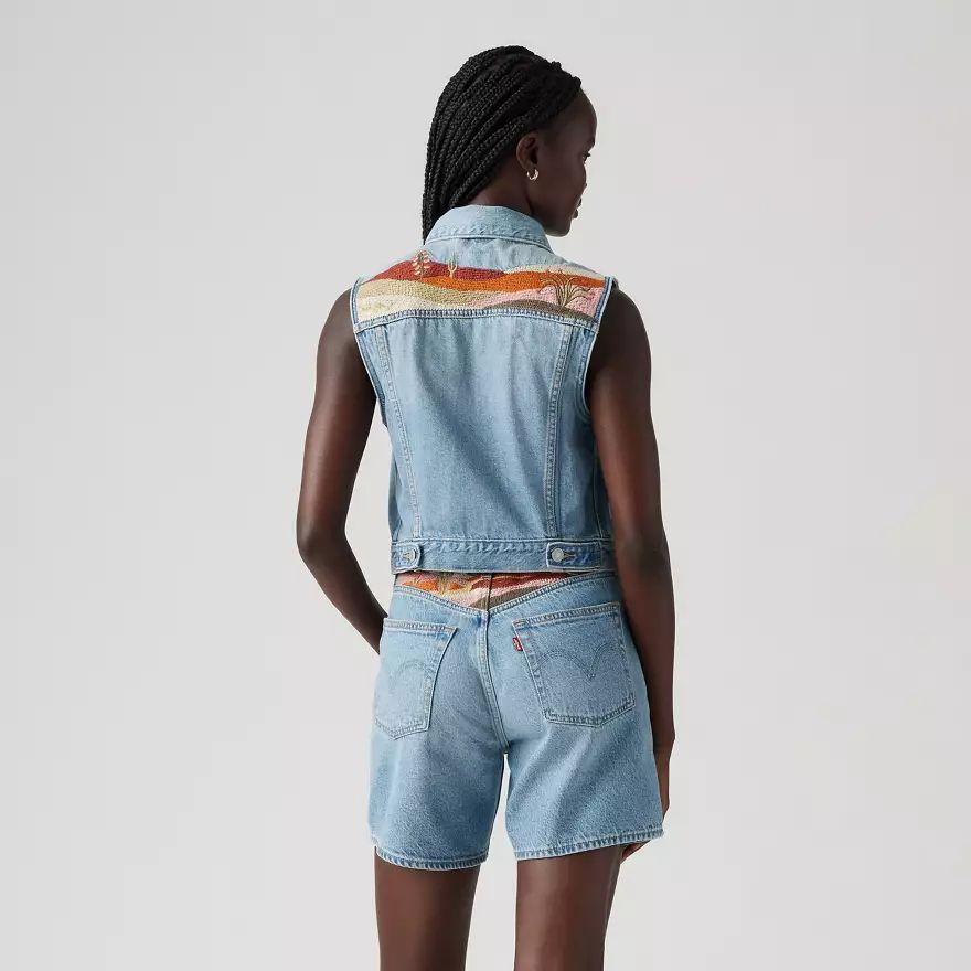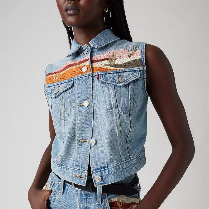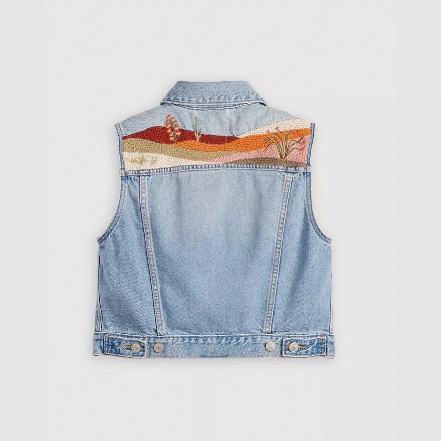 Notre gilet Embroidered XS a de jolis détails, comme une broderie western et une coupe crop parfaite.