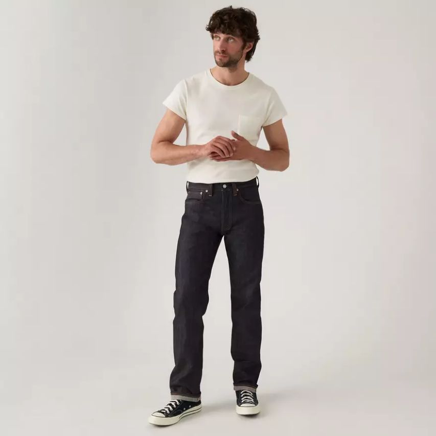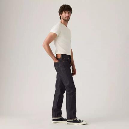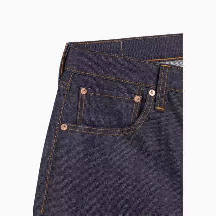 C’était en 1947, et bien que la guerre était terminée, la nation avait beaucoup changé, tout comme notre jean 501®. La fin des rations a permis le retour des caractéristiques familières du 501®, comme les rivets de la poche à gousset. Mais elle a également inauguré quelques nouveautés en réponse à l’évolution de la classe moyenne émergente, comme une coupe moderne plus slim et l’abandon des détails superflus comme la martingale et les boutons pour bretelles. Et bien que l’arc de cercle de la poche arrière ne soit plus appliqué à la peinture, comme pendant la guerre, il a sans aucun doute changé. Grâce à la nouvelle technologie de surpiqûre à aiguille double, la fameuse couture en arc de cercle pouvait être produite en masse dans une taille et un design uniformes, indépendamment des compétences de couture de chaque travailleur. Aujourd’hui, nous reproduisons toutes ces caractéristiques pour ce jean 501® de 1947 en utilisant le même denim à lisière selvedge rouge de 340 g.