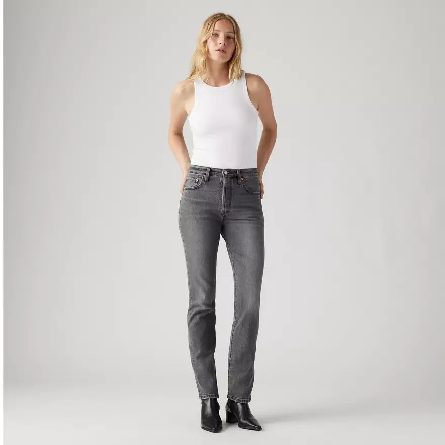 Présente la coupe droite iconique et l’emblématique braguette boutonnée