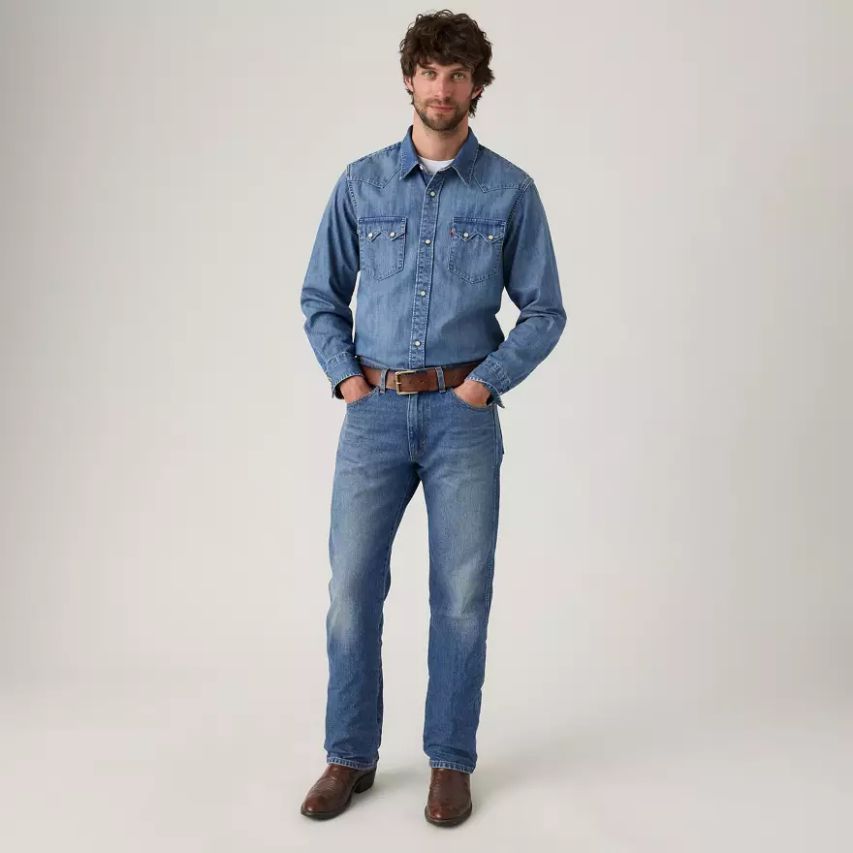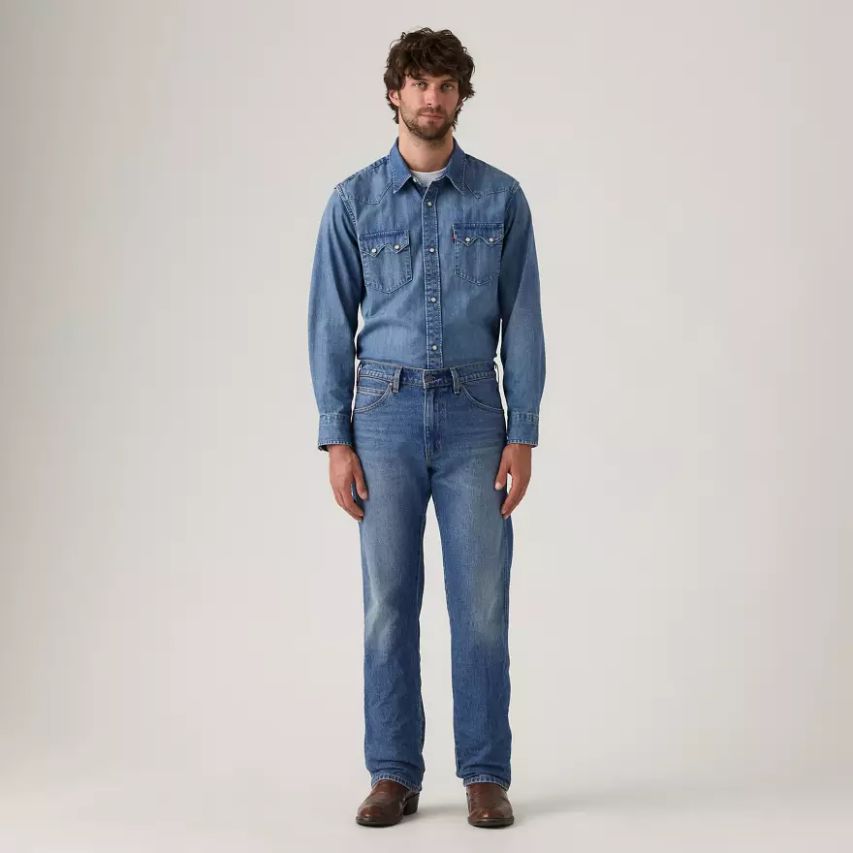 Le 557™ Western Straight est fait pour l’action, pour les choses sérieuses comme pour les plus simples. Le bas de jambe droit passe facilement sur vos bottes et ce jean légèrement stretch vous offre un confort optimal tout au long de la journée. Il a des coutures rabattues résistantes, des poches ergonomiques renforcées et une taille haute qui remonte haut sur le dos.