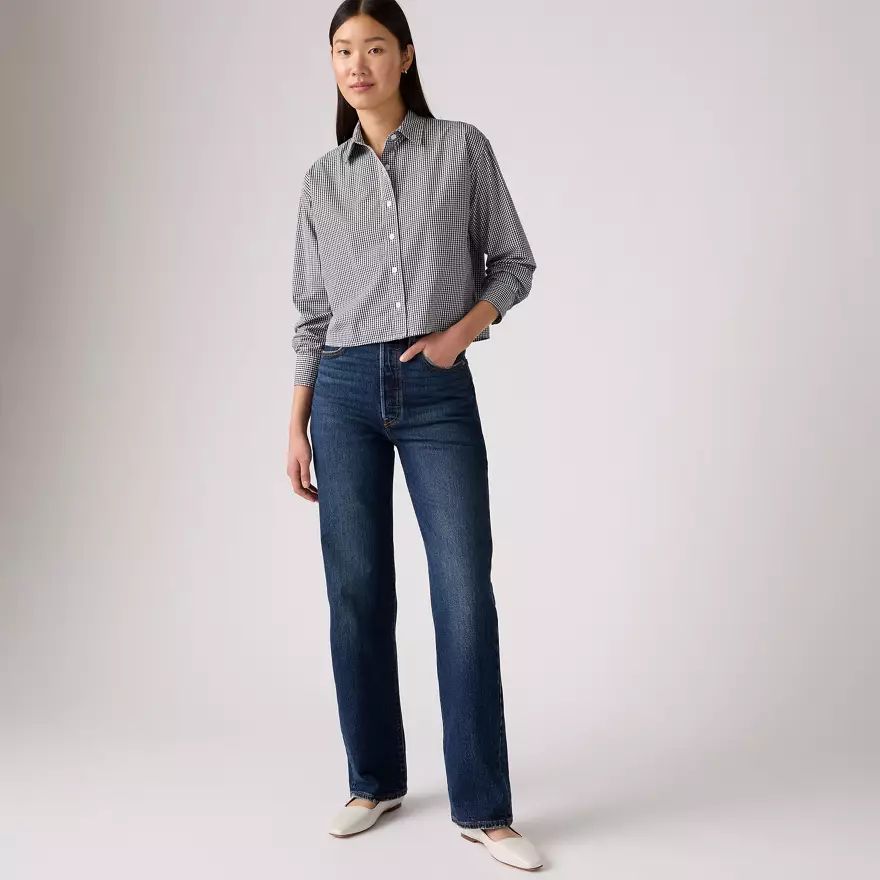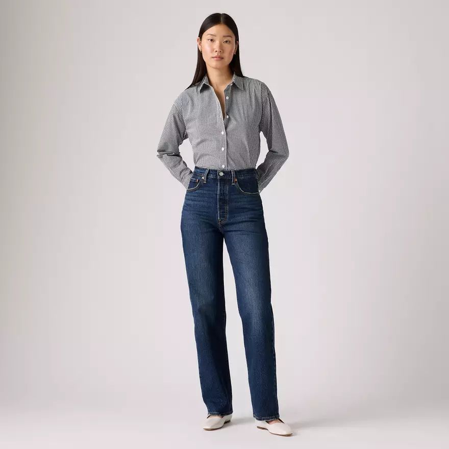 Notre modèle à taille la plus haute. Ce jean Ribcage Full-Length est devenu une obsession, avec sa hauteur de fourche avant de 30 cm, il met la taille en valeur et allonge les jambes. Modèle flatteur pour la silhouette. Vous vous sentirez aussi belle dans ce jean que bien dans votre peau. De plus, ce jean affiche une silhouette longue qui lui donne un look décontracté.