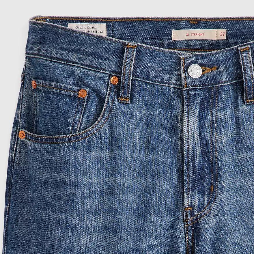 Nous avons opté pour une coupe baggy oversize, une jambe droite plus large et une taille mi-haute pour créer ce jean XL Straight. Et nous avons ajouté une ceinture à nouer pour plus de polyvalence.