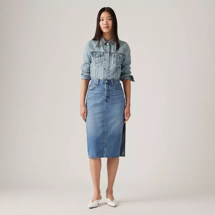 Lorsque vous pensez à des pièces emblématiques des années 90, nous sommes sûrs que les jupes mi-longues en denim vous viennent à l’esprit. Découvrez notre jupe Slide Slit, une version moderne de ce modèle rétro aux fentes latérales pour un look moderne.