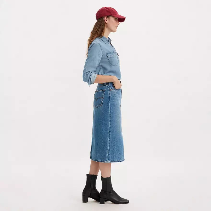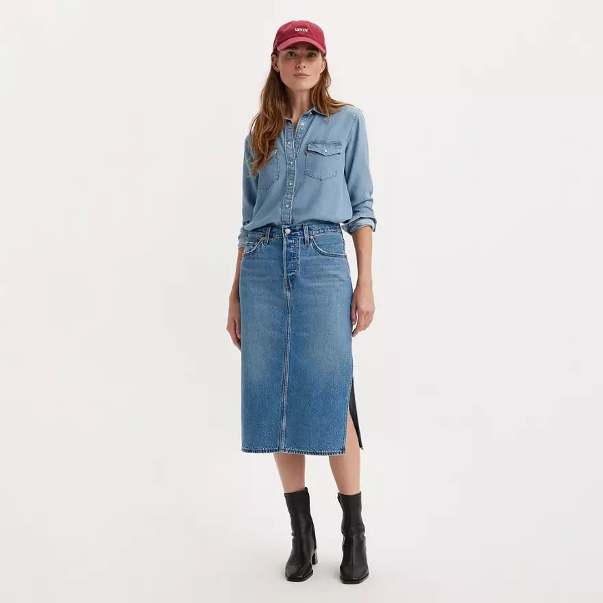 Lorsque vous pensez à des pièces emblématiques des années 90, nous sommes sûrs que les jupes mi-longues en denim vous viennent à l’esprit. Découvrez notre jupe Slide Slit, une version moderne de ce modèle rétro aux fentes latérales pour un look moderne.
