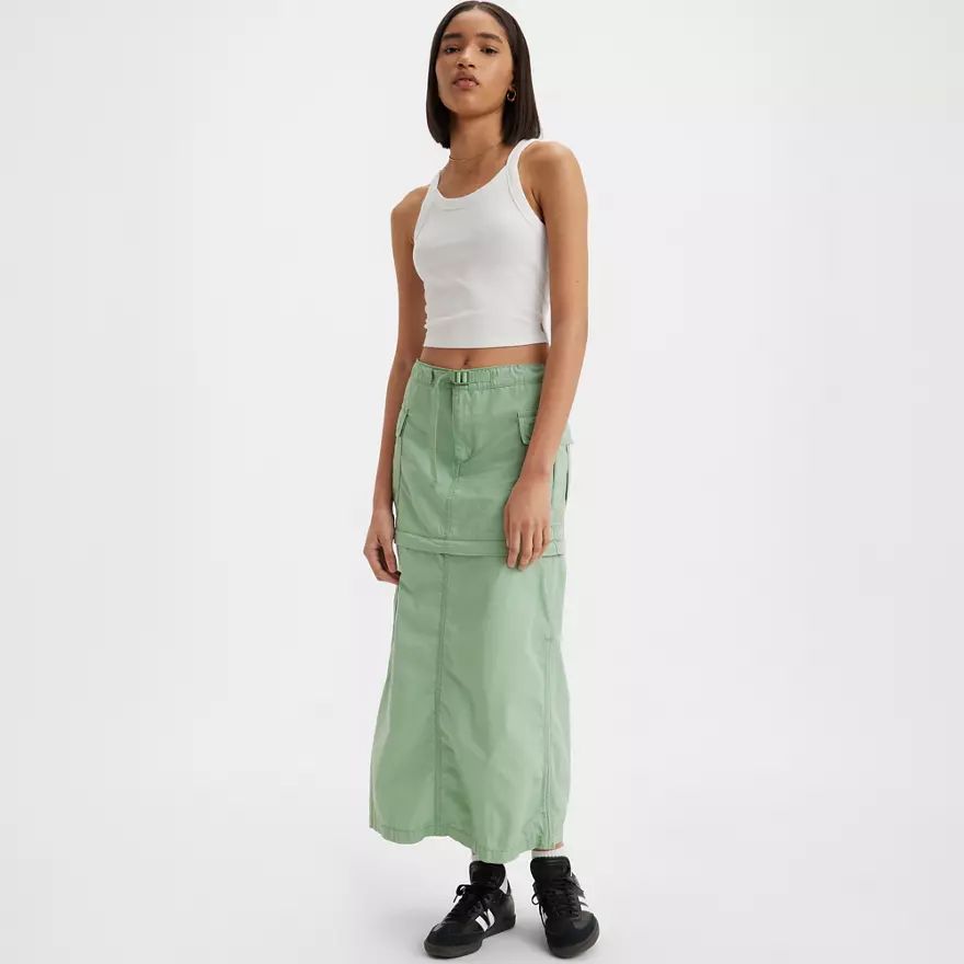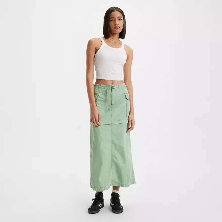L’esprit sportif du pantalon cargo dans une jupe convertible. Avec sa taille mi-haute ultra-flatteuse et sa coupe ample et décontractée, notre jupe cargo convertible peut être portée zip ouvert pour un look mini ou zip fermé pour une coupe plus longue. Et sa ceinture réglable vous permet de la porter plus ou moins haut sur la taille, tous les styles sont permis.