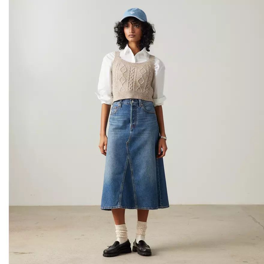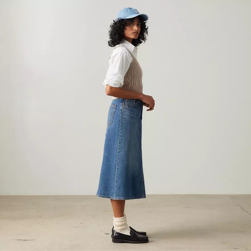 Remplacez votre jean quotidien par notre jupe coupe en A taille haute Decon. Nous l’avons coupé avec une taille haute décontractée, une silhouette en A mi-longue flatteuse et un design en denim déstructuré.