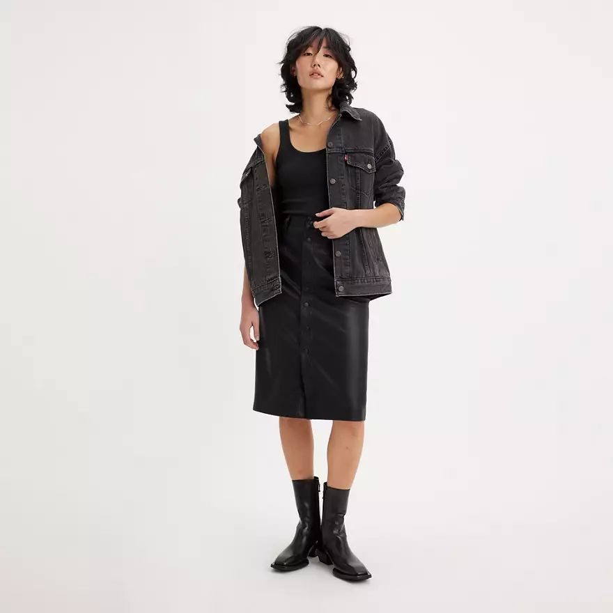 La jupe crayon classique se refait une beauté. Notre jupe crayon en similicuir avec une taille haute flatteuse et un design intemporel.