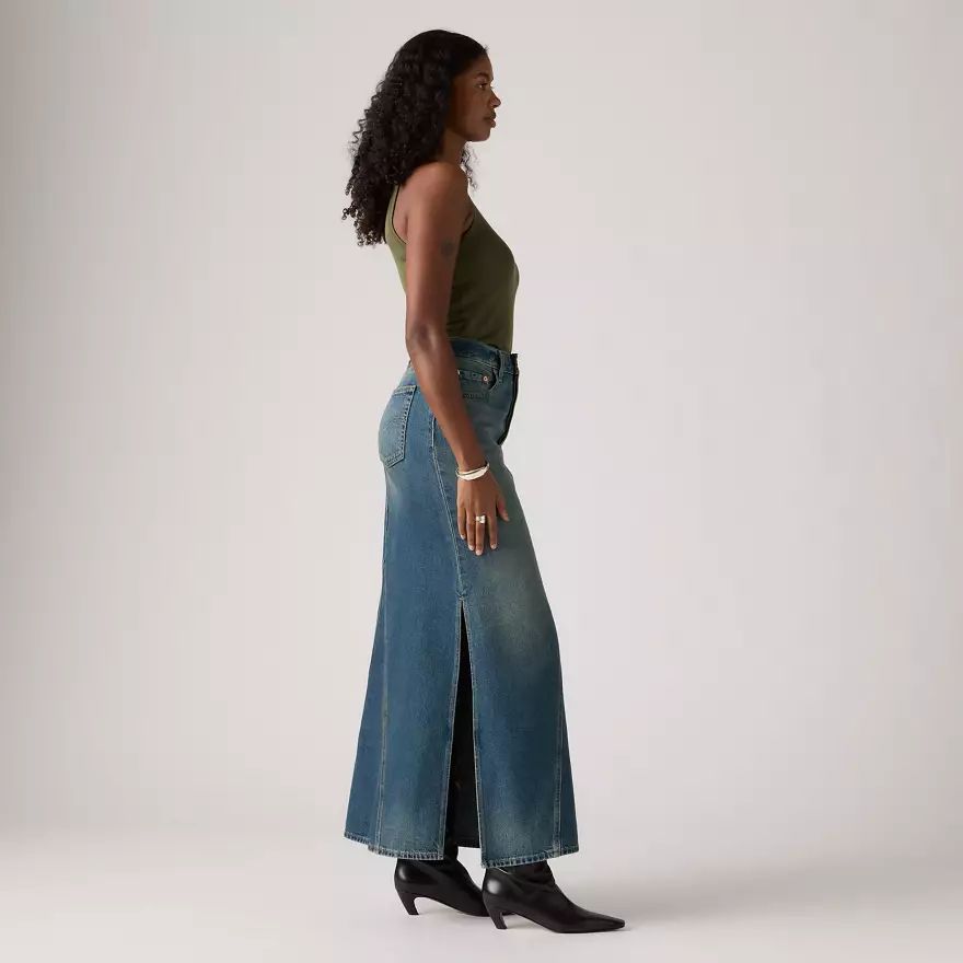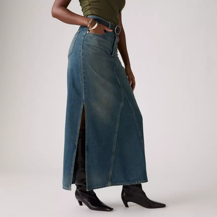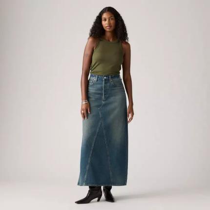 Notre jupe longue Icon est la jupe en denim intemporelle que vous recherchiez, avec une taille mi-haute et les emblématiques détails Levi's® que vous adorez. Retournez-la et vous trouverez deux poches arrière qui ont le même charme que celles sur votre jean 501® préféré.