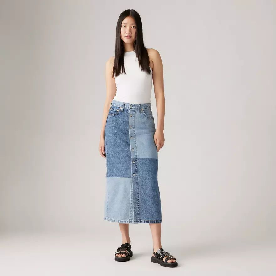 Rien n’est plus intemporel que notre jupe mi-longue boutonnée. Nous lui avons donné une taille mi-haute, une patte de boutonnage devant et une longueur mi-longue parfaite.