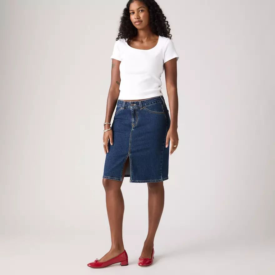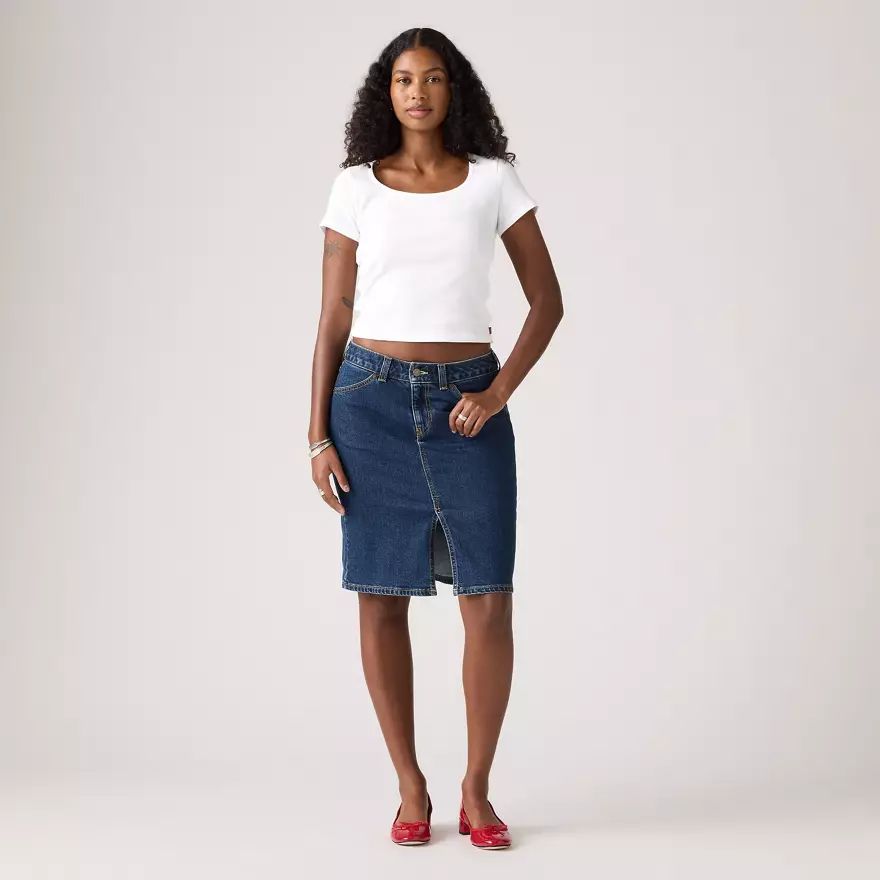 Simple, décontractée et parfaite, notre jupe mi-longue Low est parfaite en toute occasion. Nous lui avons donné une taille basse rétro, une coupe ajustée et une touche de stretch pour un confort optimal du matin au soir.