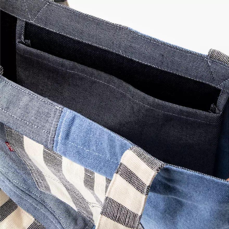 Nous avons travaillé en équipe avec Mercado Global, un organisme à but non lucratif qui permet aux femmes des zones rurales d’Amérique latine de devenir entrepreneuses, pour vous offrir un style unique en son genre. La collaboration de cette saison met en valeur un mélange de denim Levi's® retravaillé et de tissu traditionnel guatémaltèque. Ces femmes artisanes ont réinventé ce style urbain typique des années 1990 en utilisant leurs techniques ancestrales de tissage et des tissus en denim indigo. Nous avons conçu notre sac cabas Mercado Global avec un intérieur spacieux pour y ranger tous vos effets personnels. Ce modèle est conçu avec un patchwork original et une poche arrière.