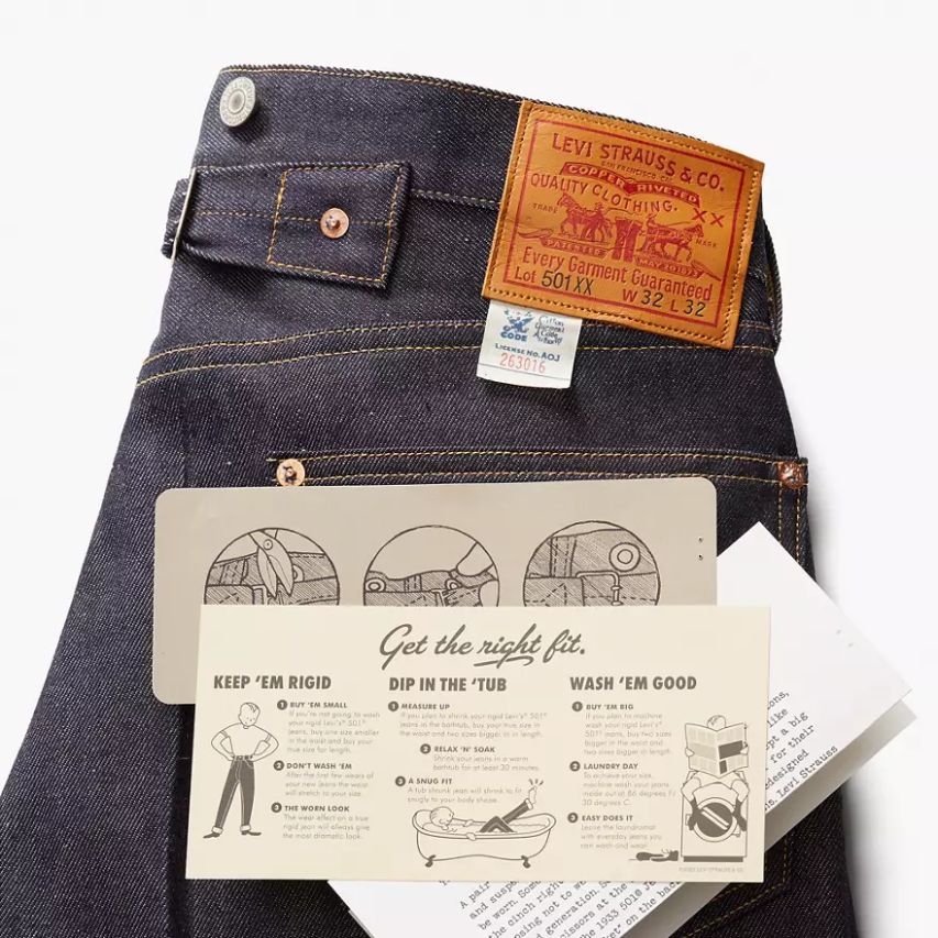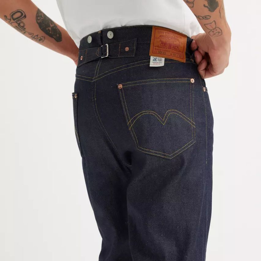 Notre jean 501® de 1933 a été revisité avec des passants de ceinture et des détails traditionnels, comme la martingale classique et les boutons à bretelles. À l’époque, les personnes qui portaient des vêtements Levi's® découpaient souvent la martingale au niveau du rivet et supprimaient les boutons à bretelles, tout simplement parce qu’elles ne portaient pas leur jean Levi's® avec des bretelles, contrairement à l’ancienne génération. Conscients de cette pratique, des revendeurs Levi's® gardaient une grande paire de ciseaux à côté de leur caisse pour découper la martingale de leurs jeans lorsque leurs clients le leur demandaient.