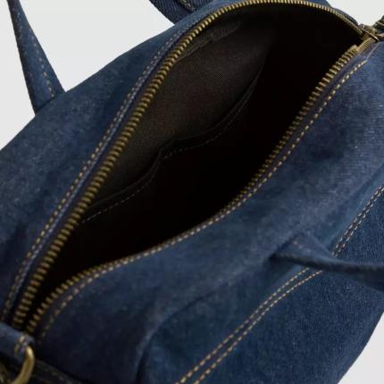 Clin d’œil à nos modèles en denim, notre sac Presley structuré à poignée supérieure est proposé en denim doux avec une fermeture zippée, une surpiqûre en arc de cercle et une bandoulière réglable et amovible.