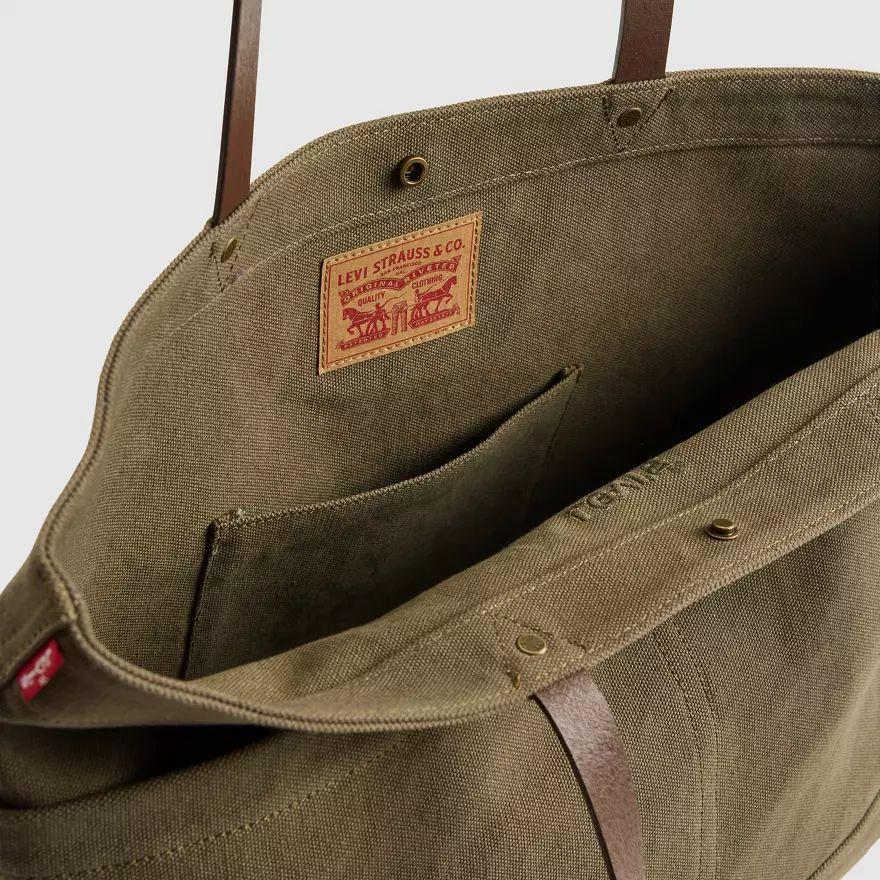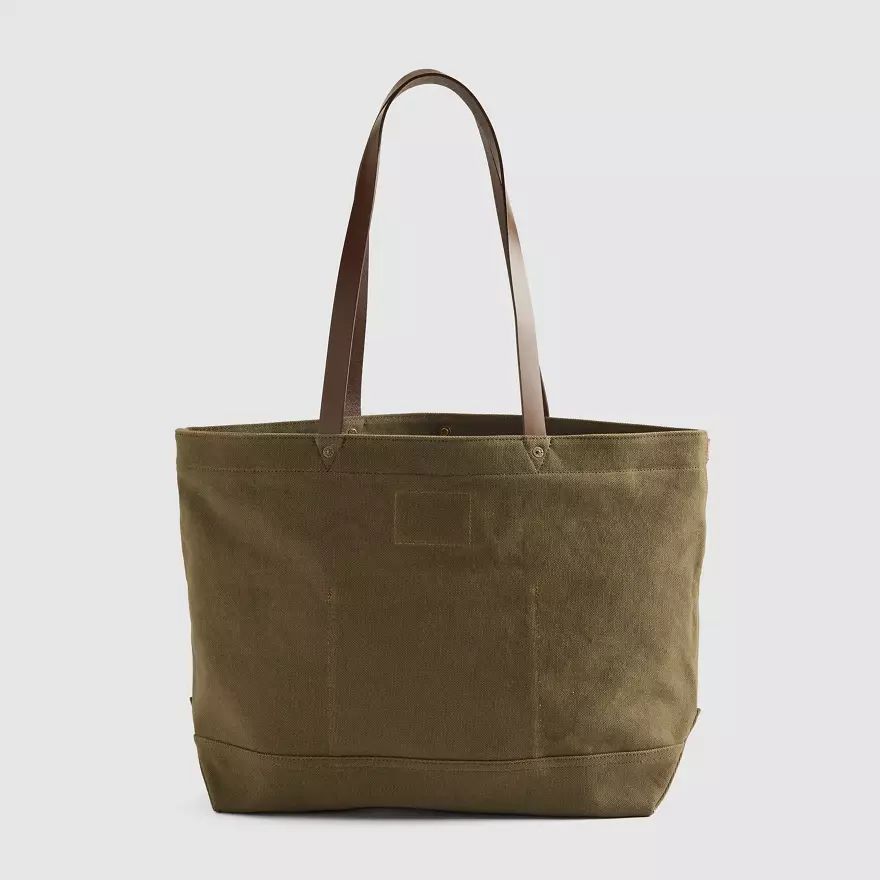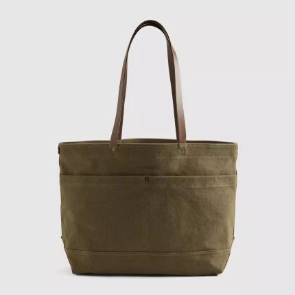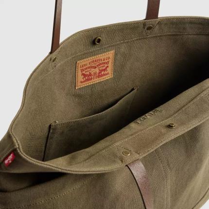 Inspiré de nos archives, ce sac cabas est le sac idéal à porter du matin au soir. Nous le proposons en toile de coton résistante, avec des sangles en cuir, un compartiment principal fermé par bouton-pression, une poche intérieure plaquée et des rivets de renfort.