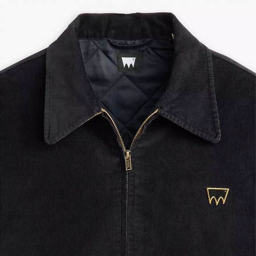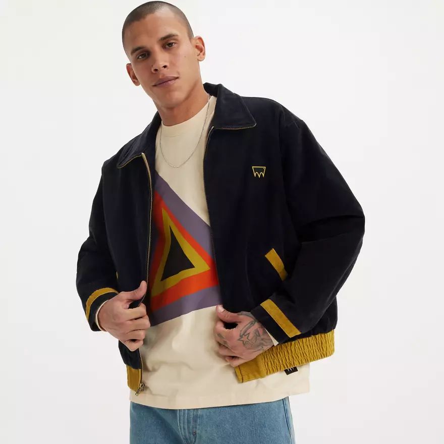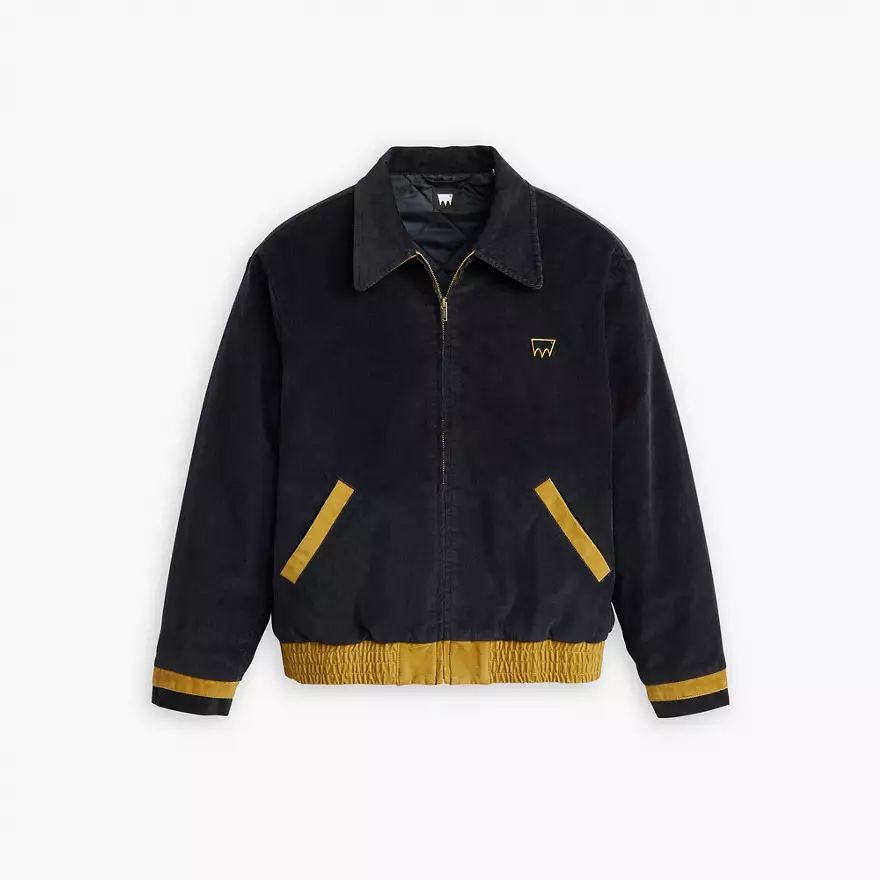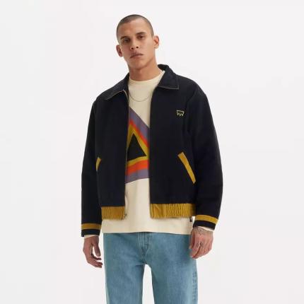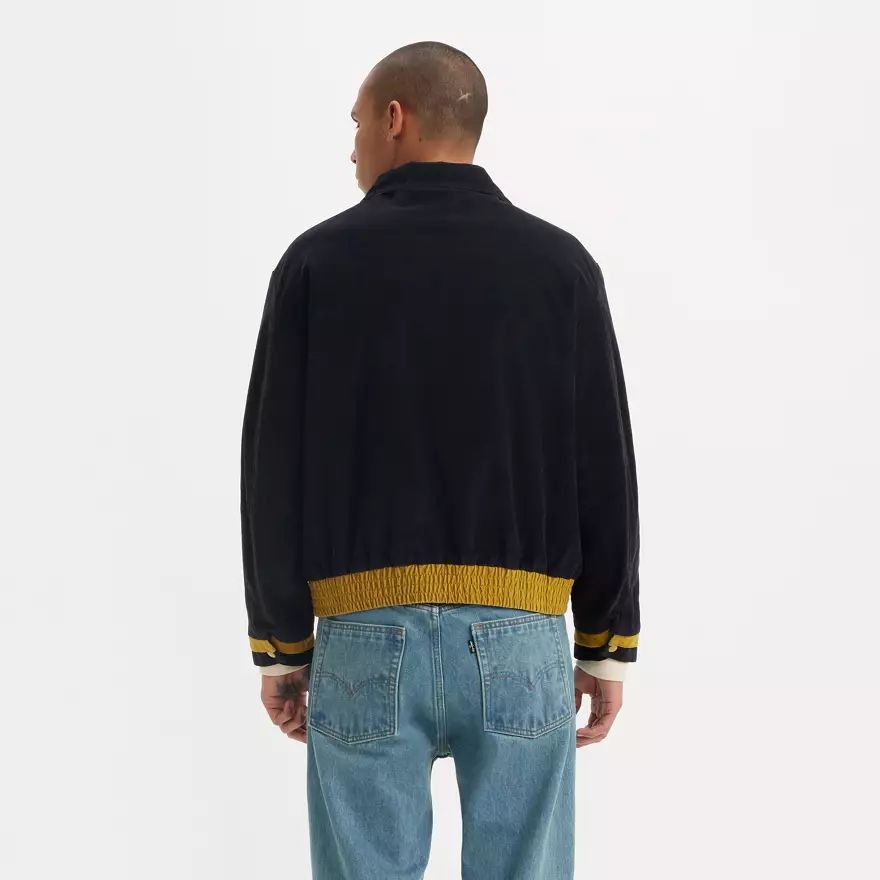 Rétro, cette veste universitaire matelassée a un col à pointe classique, un zip devant et des détails contrastants.