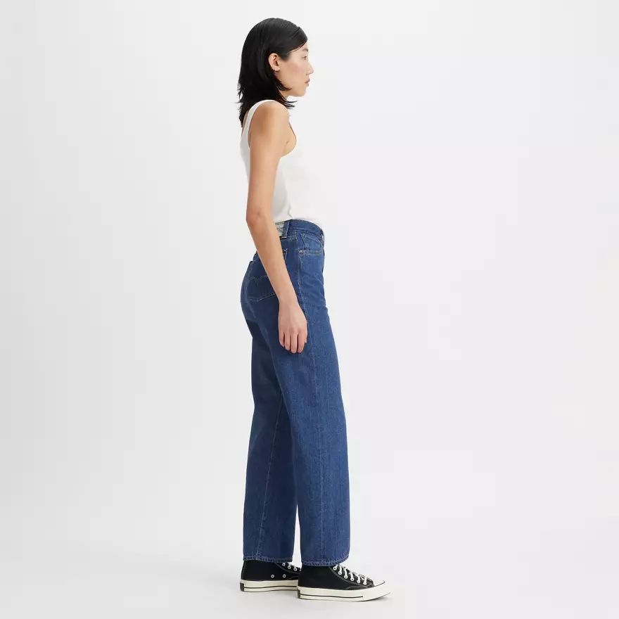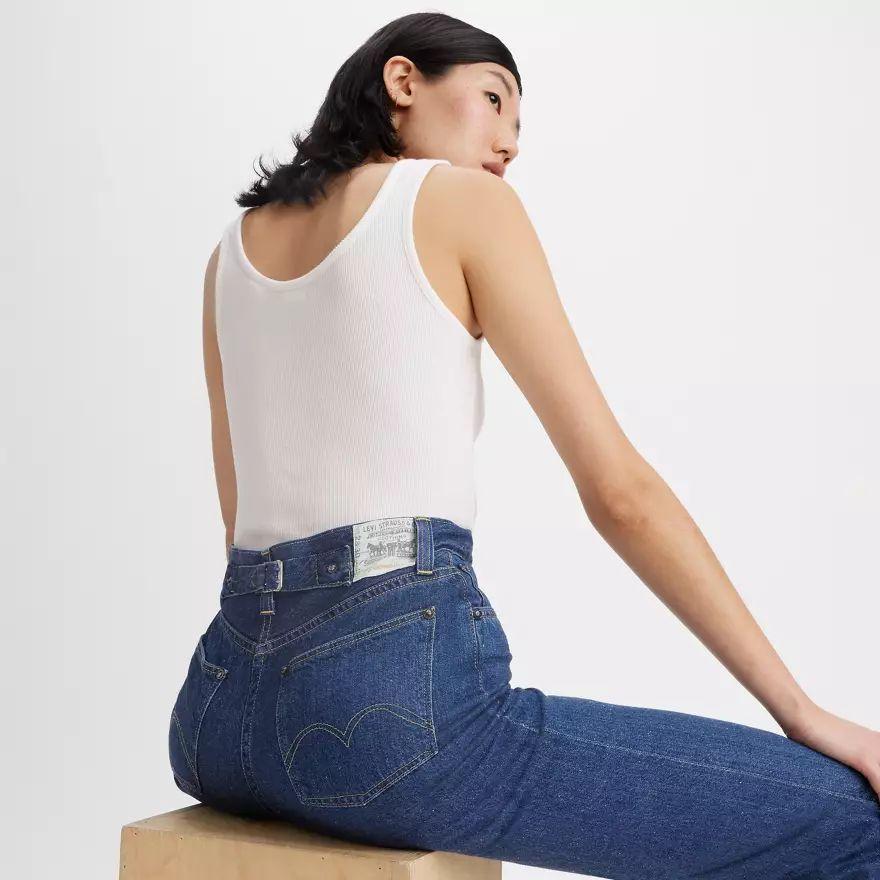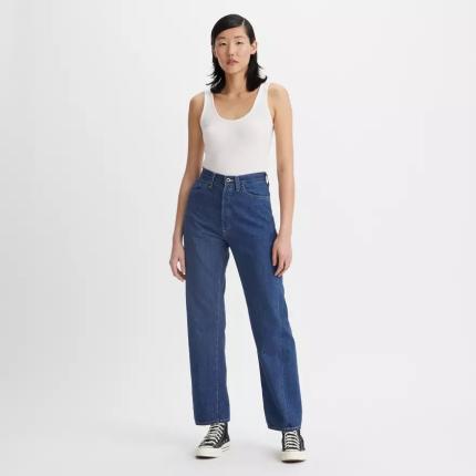 Ce jean 401 d’inspiration vintage, a un bas jambe en trompette pour allonger la jambe et une taille parfaite de 25 cm.