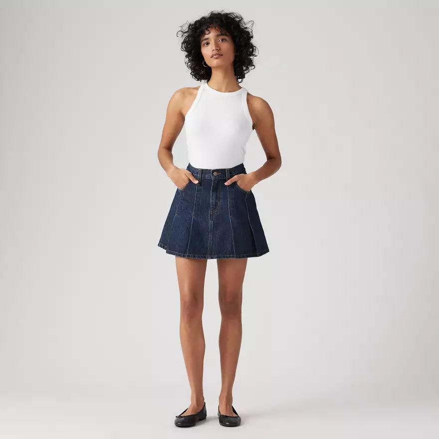Une mini jupe flatteuse qui ajoute une touche d’élégance. Comme son nom l’indique, notre mini jupe Pleated présente de jolis plis marqués par des surpiqûres, une longueur mini et se porte sur la taille.