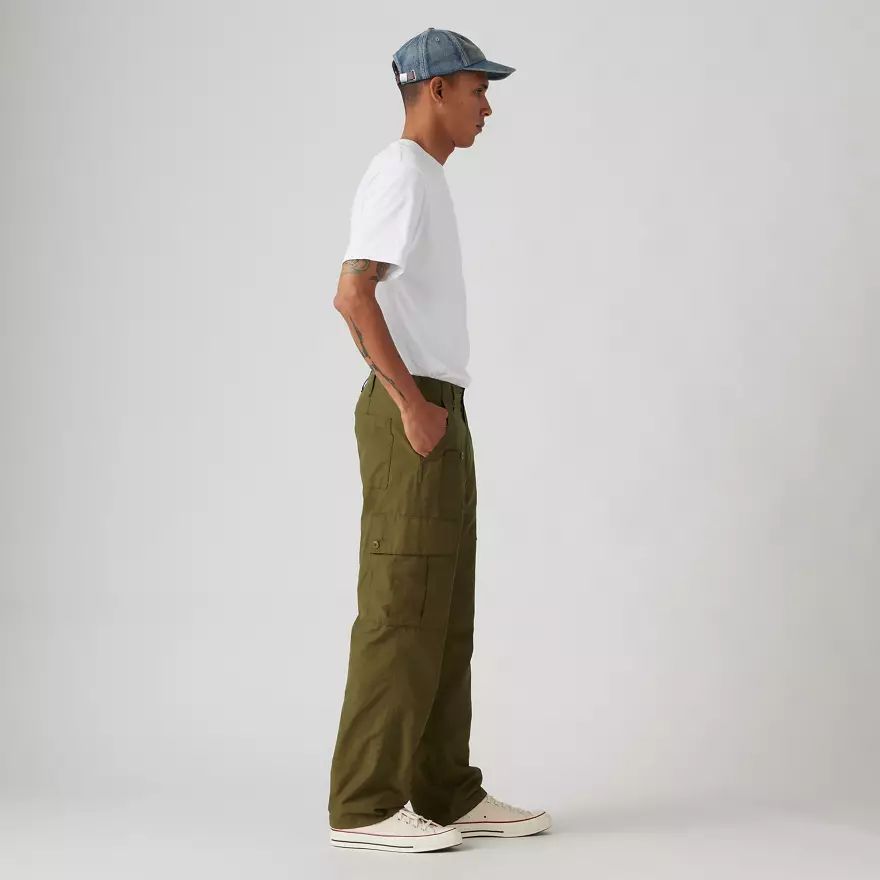 Notre pantalon Parachute Cargo a une taille mi-haute et une coupe relaxed, moderne. Il est proposé dans une matière légère pour vous sentir à l’aise, avec des poches cargo.